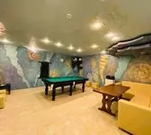 В зале №4 расположены раздевалка, комната отдыха, обеденная зона с диванами, бильярд, холодильник, электрический чайник, телевизор, музыкальная колонка с караоке и деревянная парная с возможностью использования веников. Также в вашем распоряжении душевая с одной кадушкой или ведром для обливания прохладной водой и бассейн с тёплой водой (29–31 °C) с фильтрацией. Не упустите возможность отдохнуть и насладиться качественным сервисом в нашей бане!