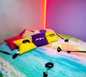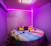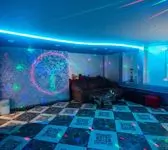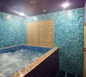 Внутри комплекса есть два уютных зала на 10 человек, бассейн, горячий джакузи, душевые, караоке автомат, светомузыка, пилон, массажное кресло, телевизор для просмотра спортивных трансляций, бар и кальян.