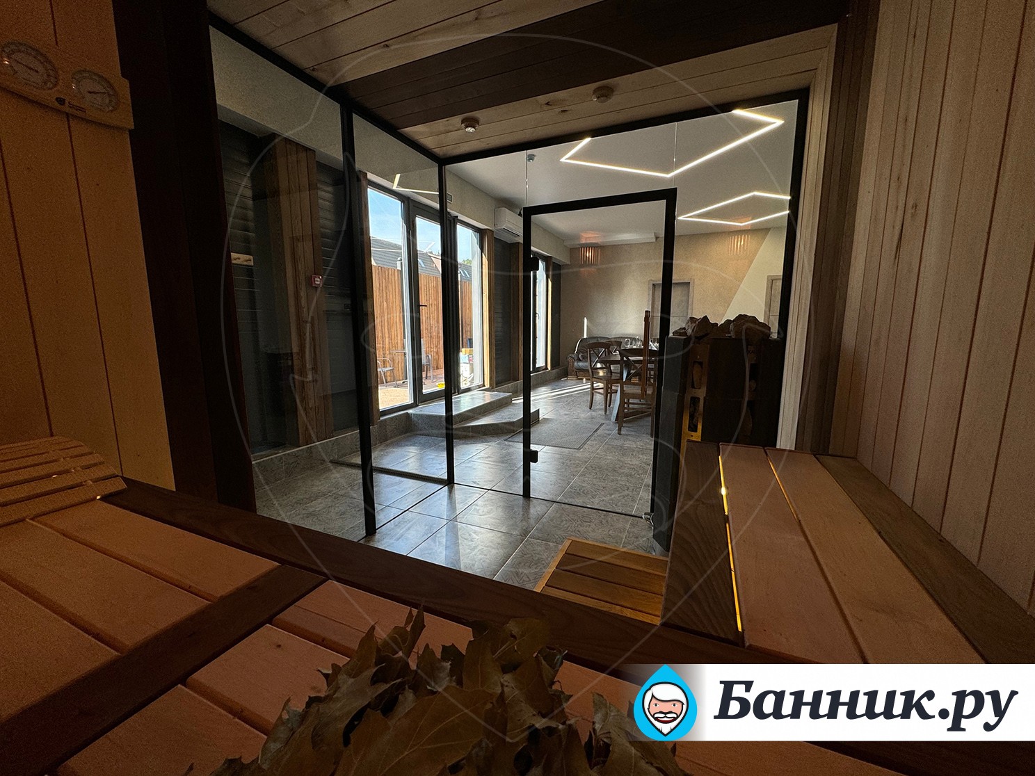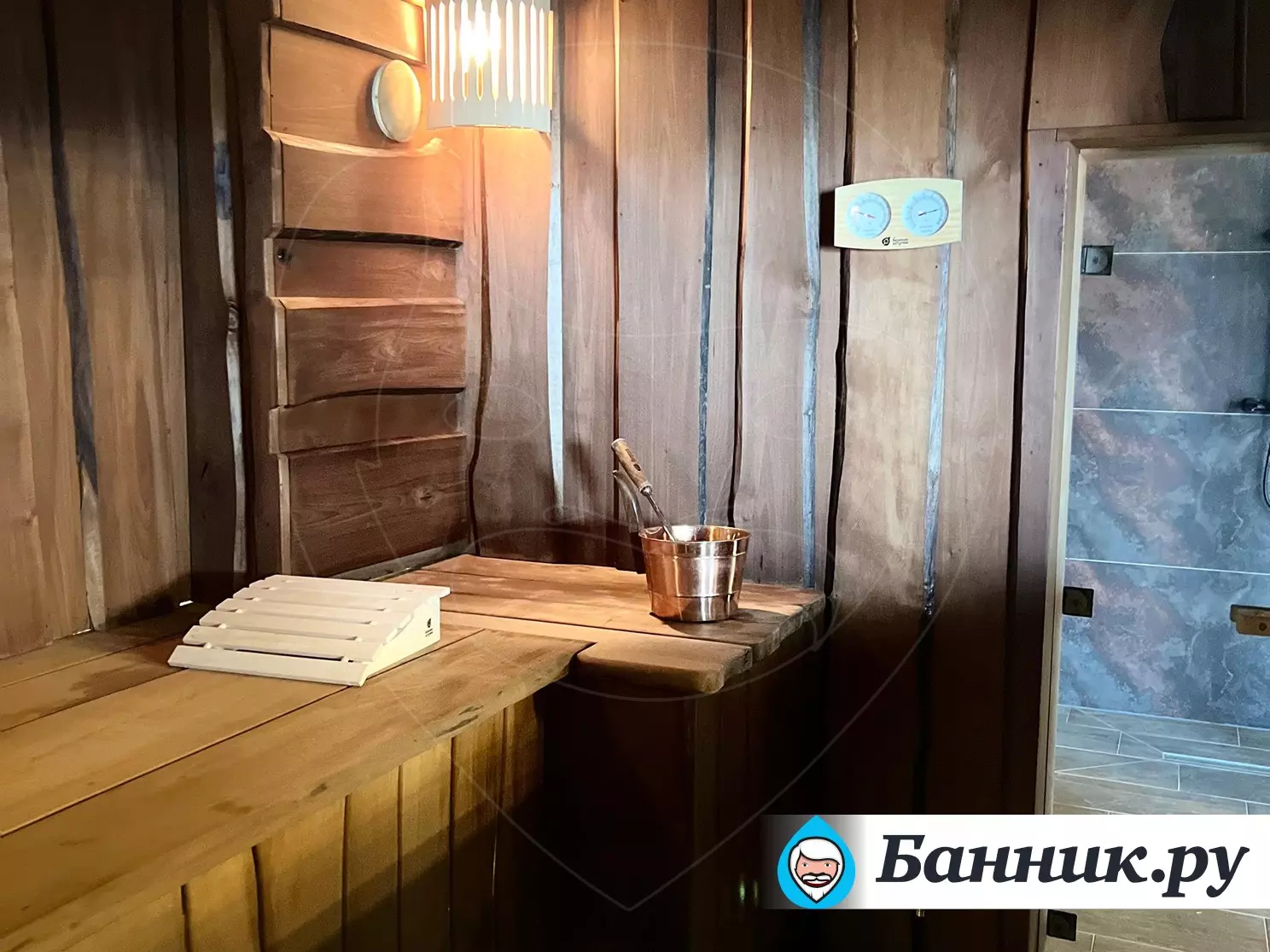 Наконец, для тех, кто не ищет компромиссов, — баня «Царская». Это наш флагман. Простор на десять человек, мощная дровяная парная, собственный хамам для мягкого пара и целых две водные процедуры: теплый бассейн внутри и роскошная дровяная купель с гидромассажем. Здесь можно провести целый день, не заметив, как пролетело время.
