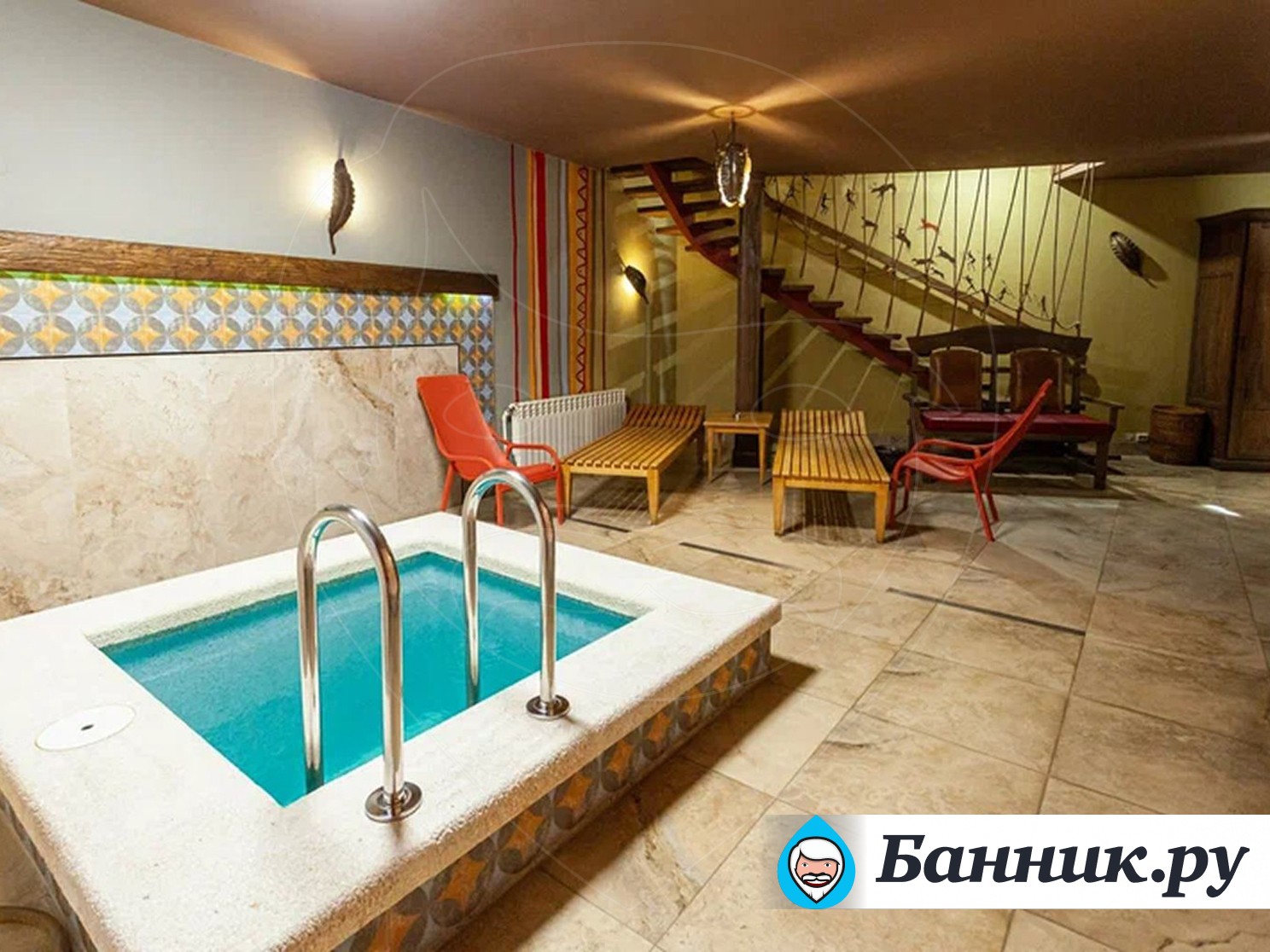 Бассейн-купель, 2 комнаты отдыха, профессиональный бильярд 10 футов.