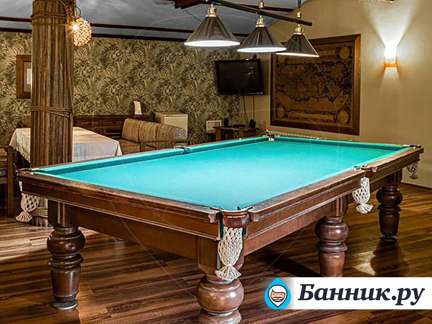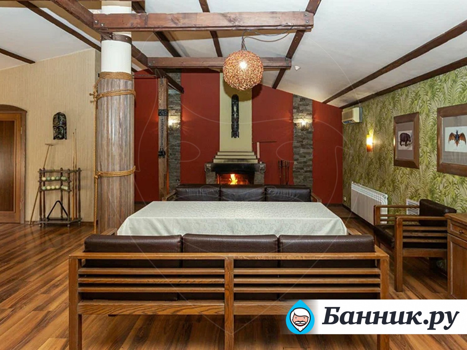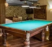 Наш банный комплекс знает толк в качественном отдыхе. Зал «Африка» — это не только жаркая парилка и ледяная купель, но и профессиональный бильярдный стол для ценителей классической игры.