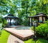 В стоимость входит пользование на приватных условиях (без доступа других лиц) территорией термы и имеющимся оборудованием, включая подогреваемый бассейн с гидроэффектами, беседку, мангал, холодильник, музыкальную колонку, шезлонги, душевые кабины, санузел.