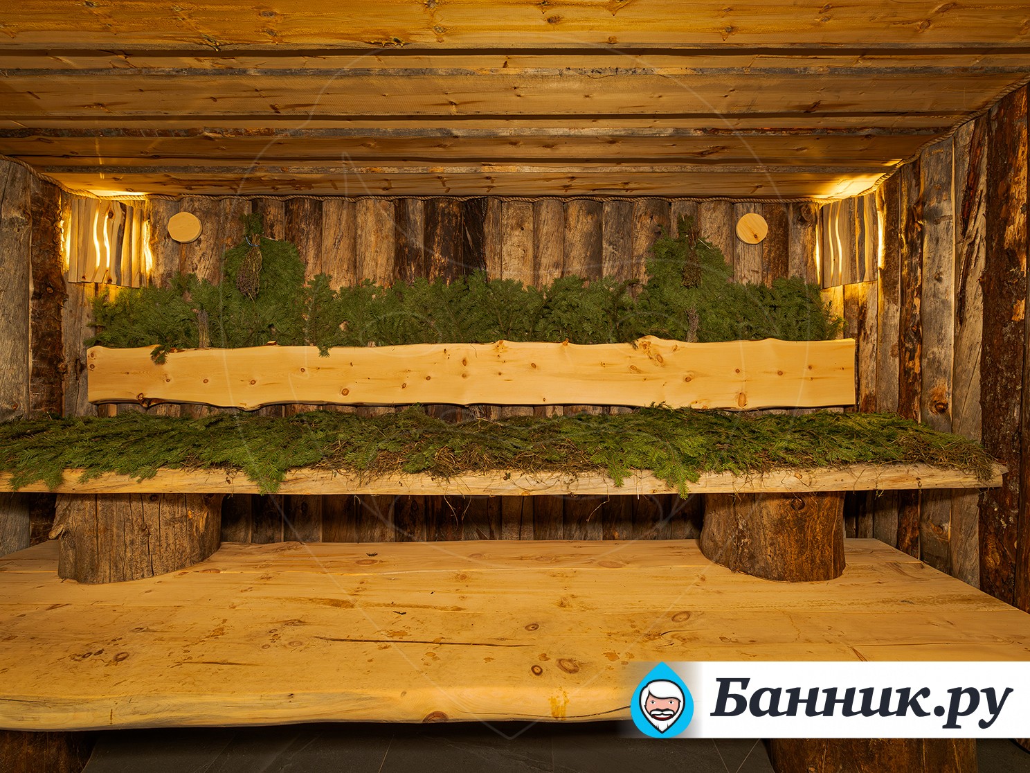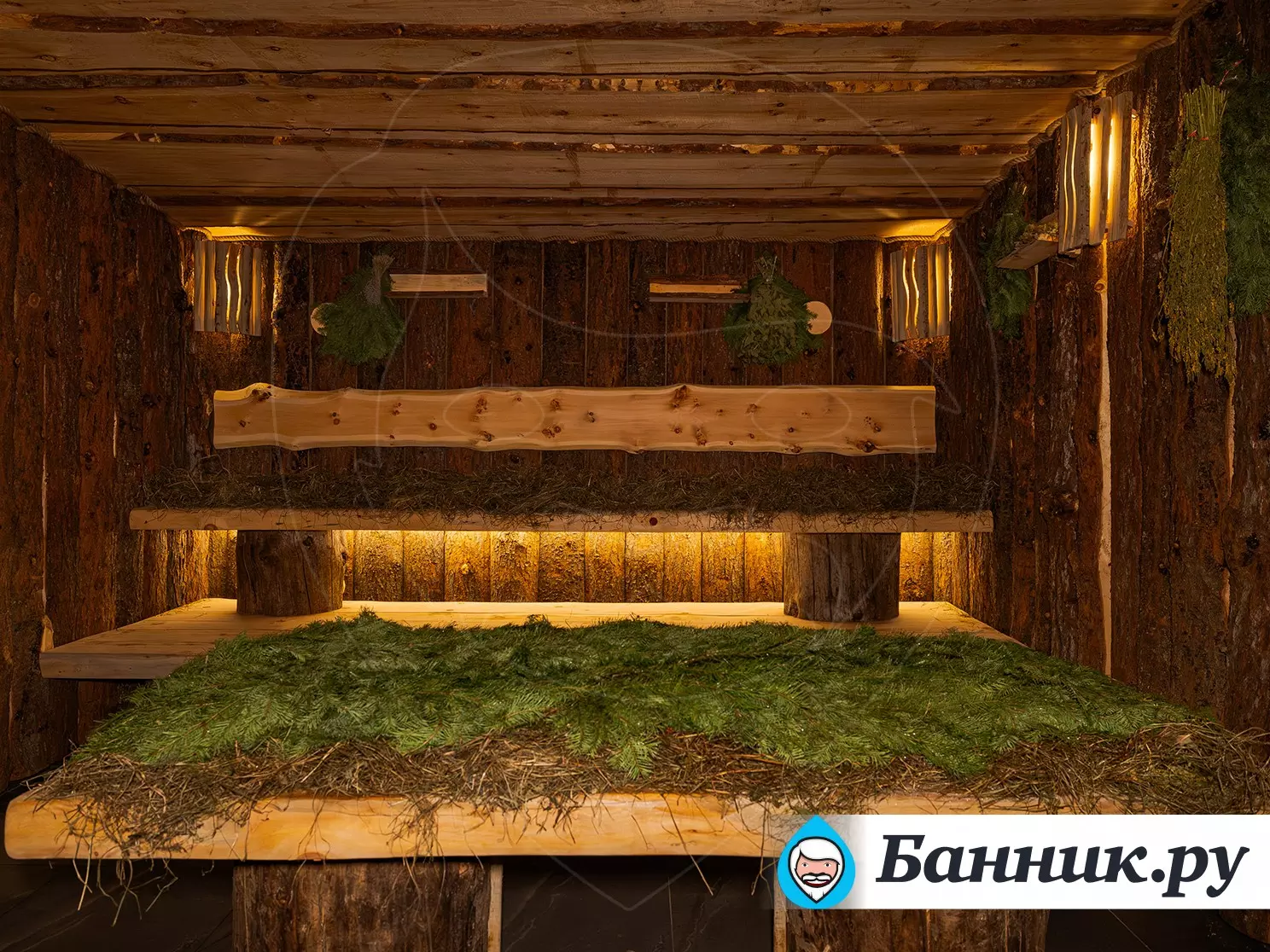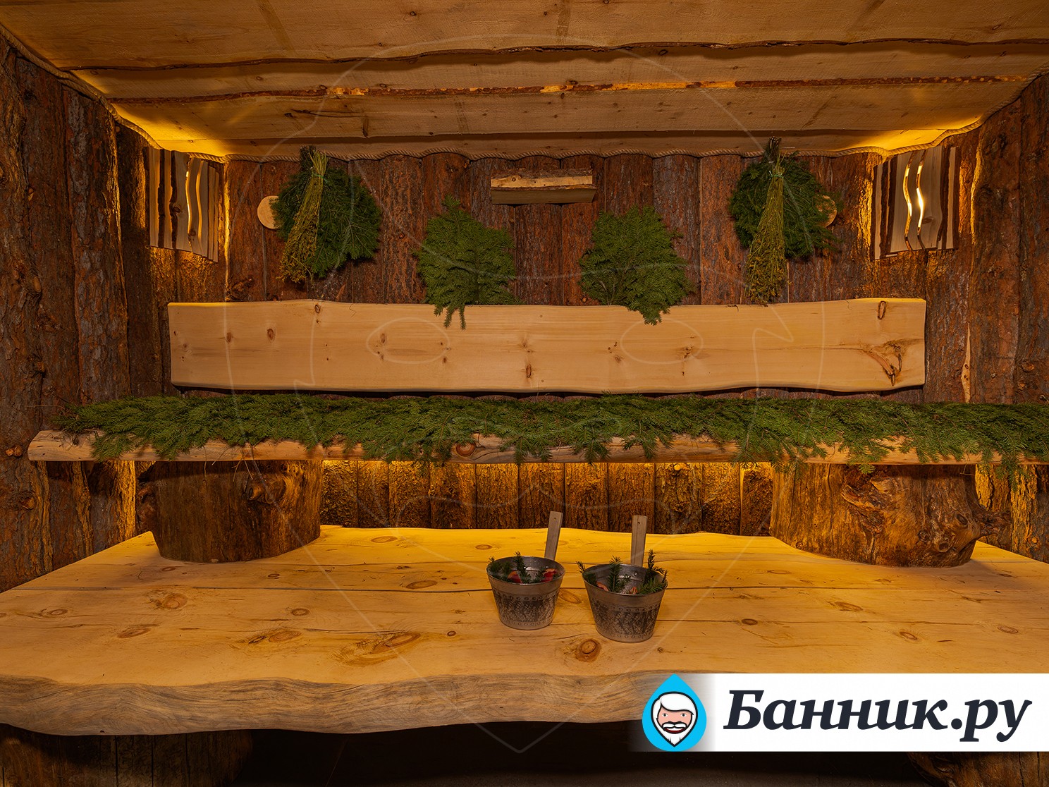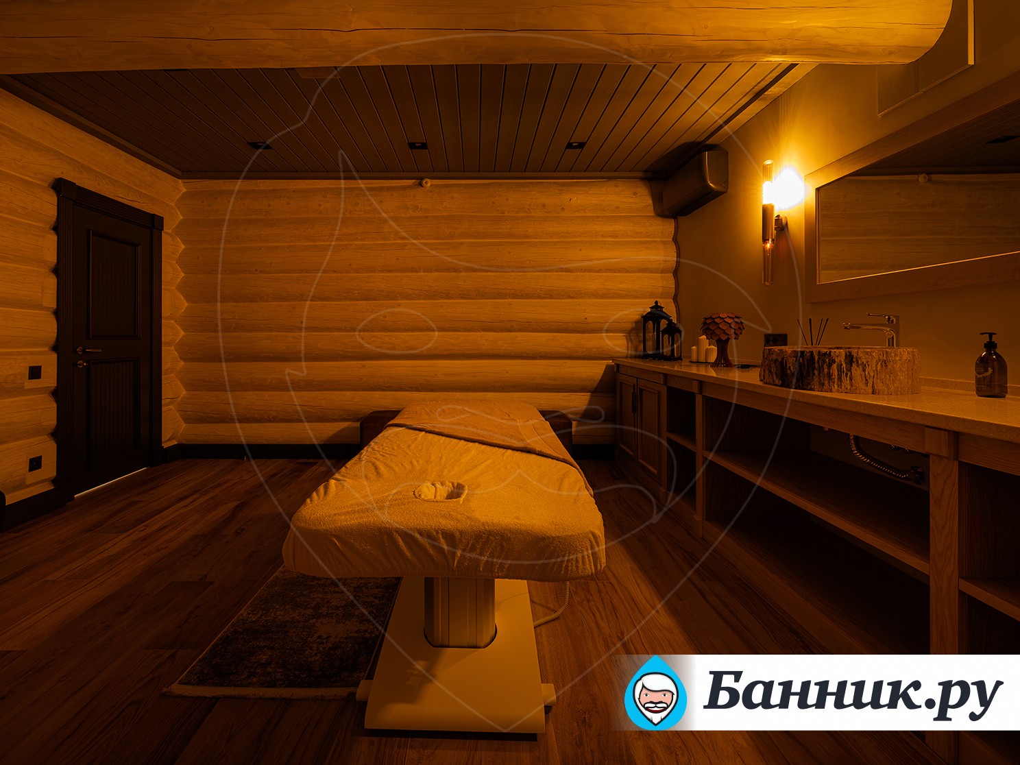 Баня выполнена из кело, создавая мягкий аромат и целительную атмосферу.