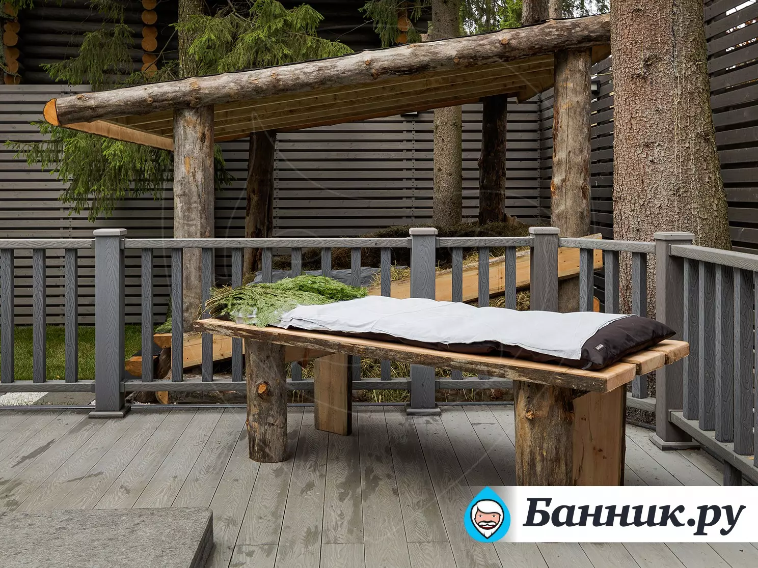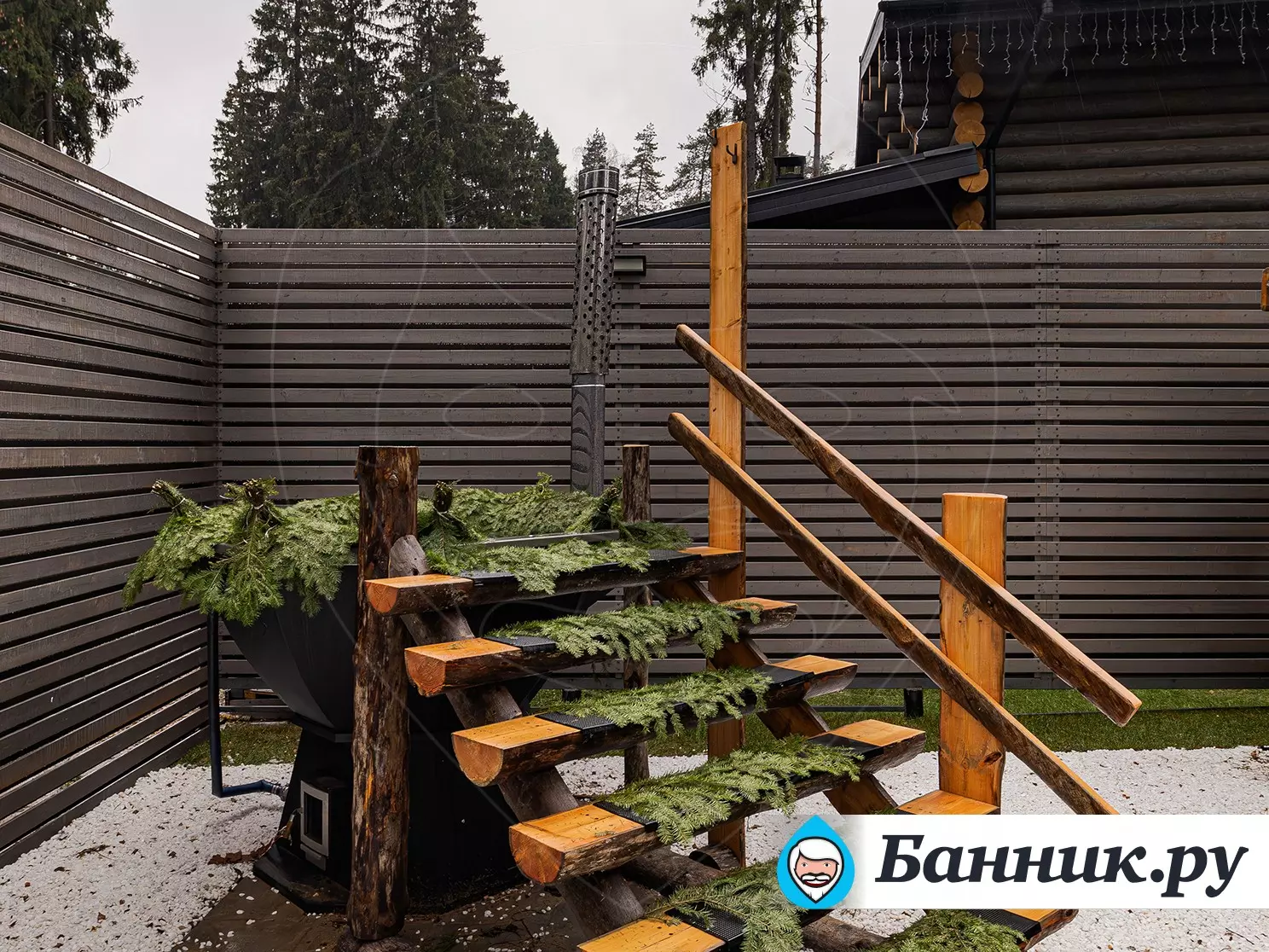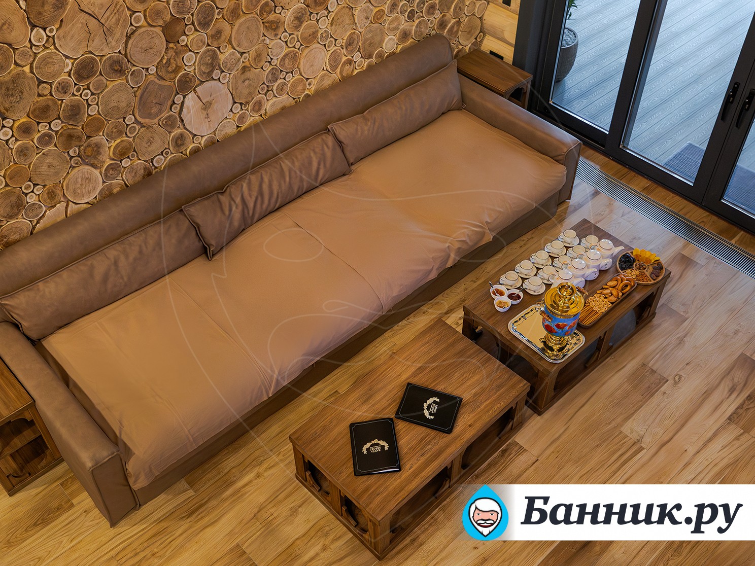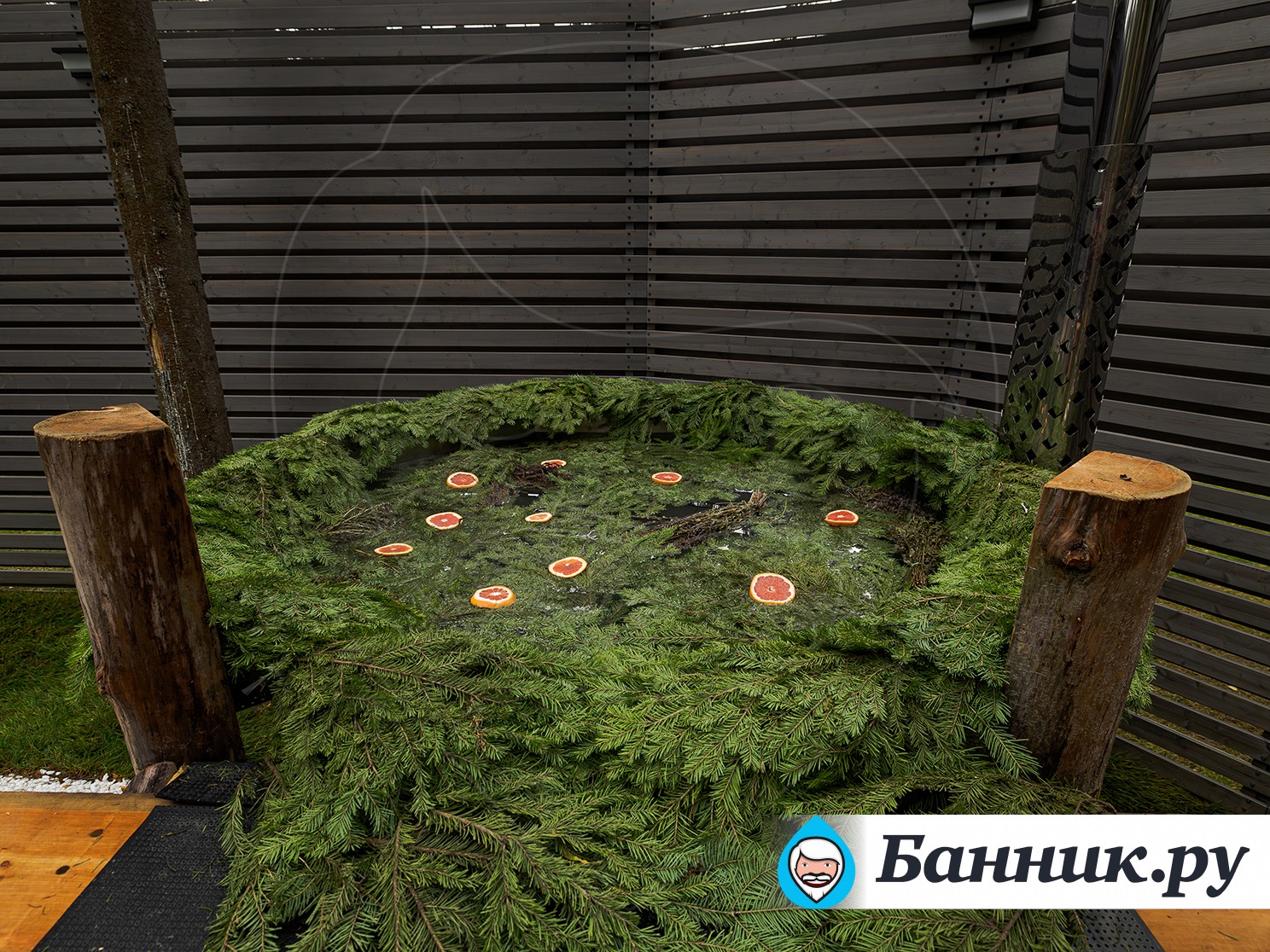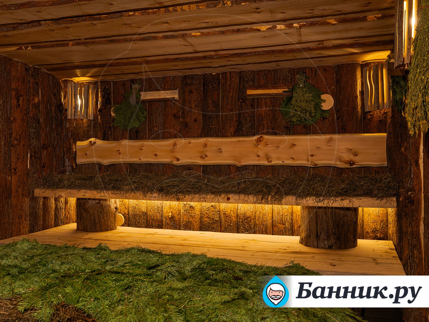 Баня выполнена из кело, создавая мягкий аромат и целительную атмосферу.