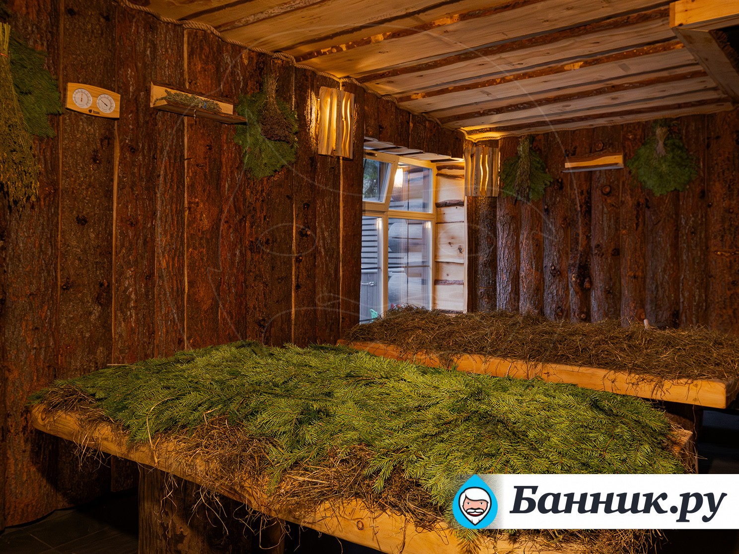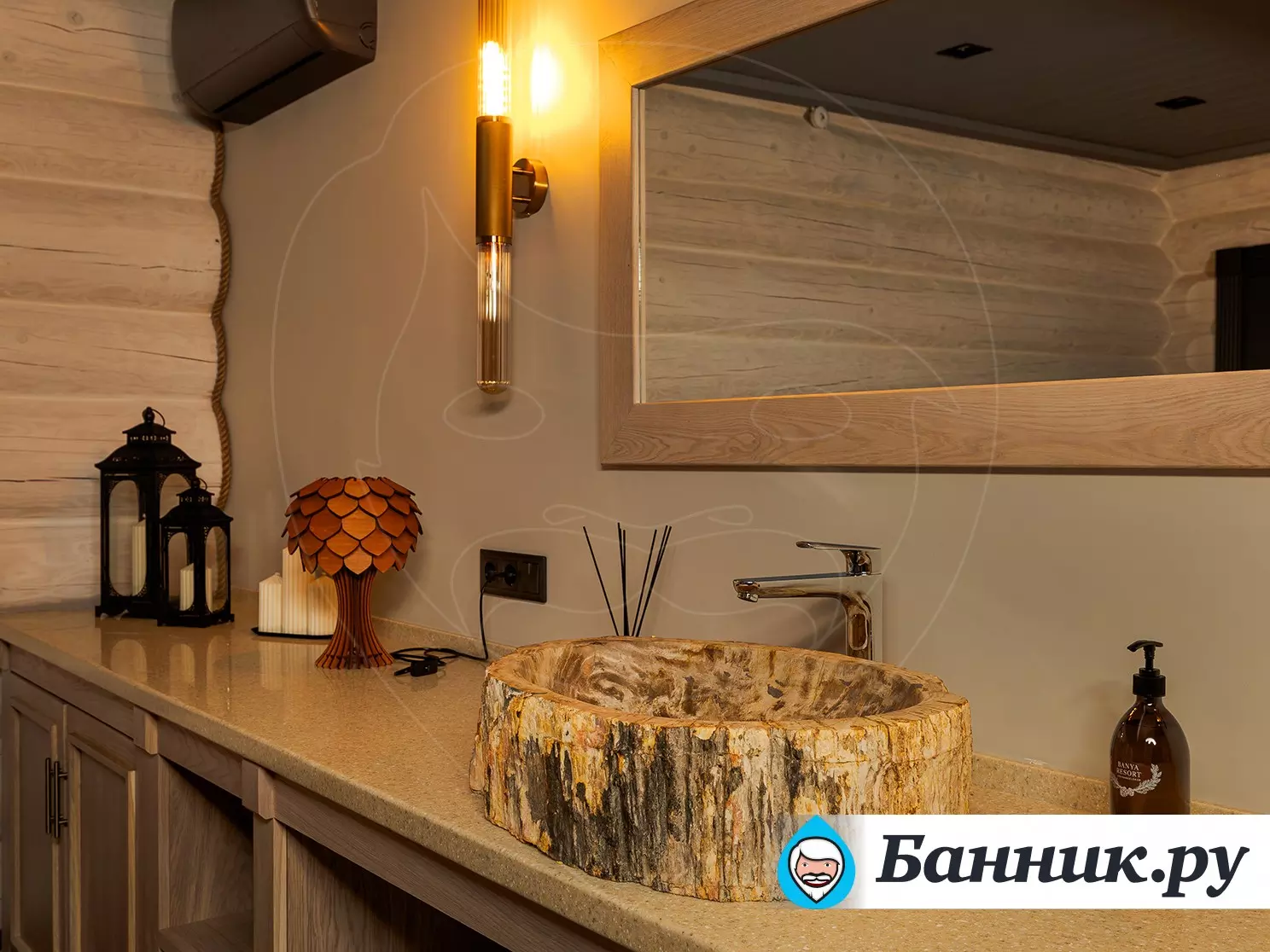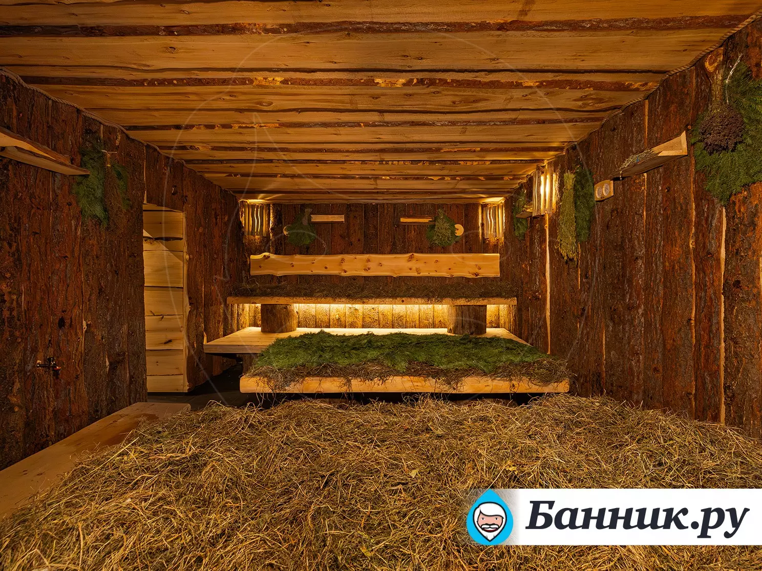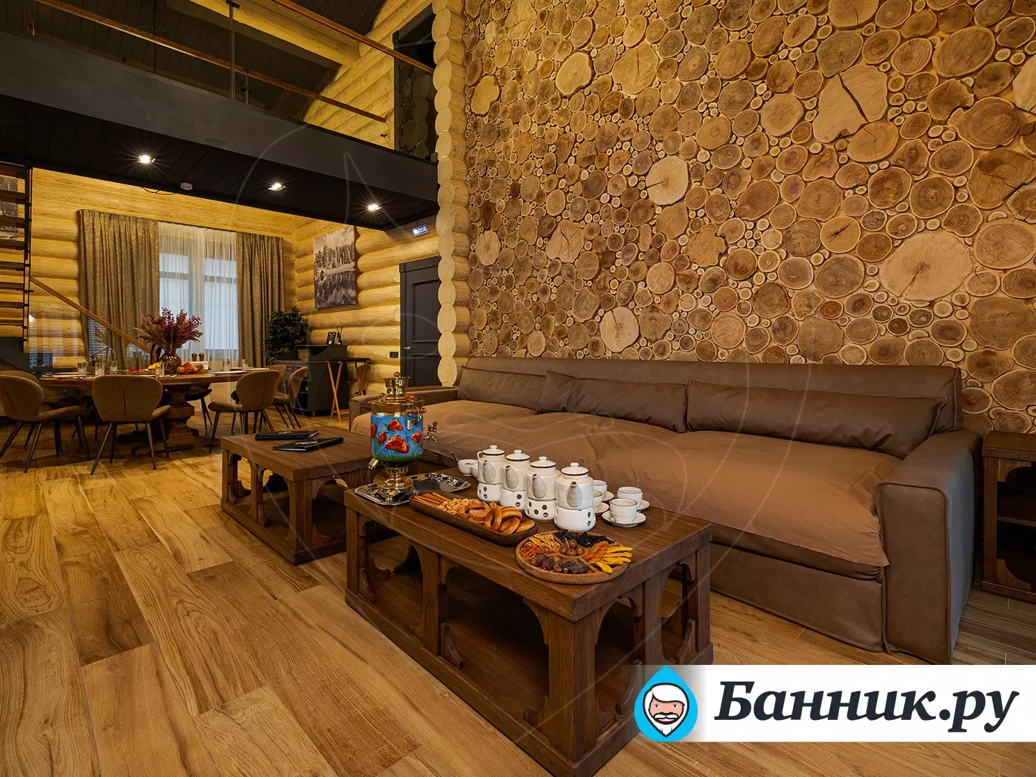 Баня выполнена из кело, создавая мягкий аромат и целительную атмосферу.