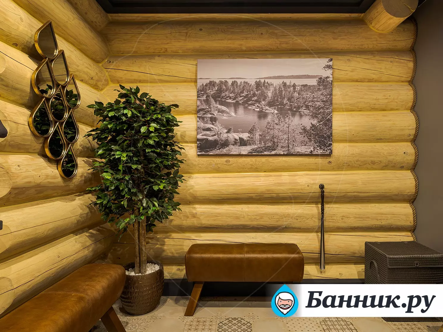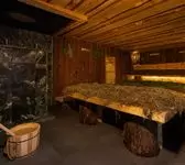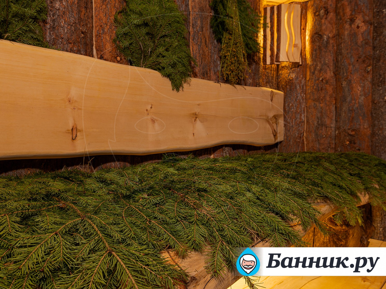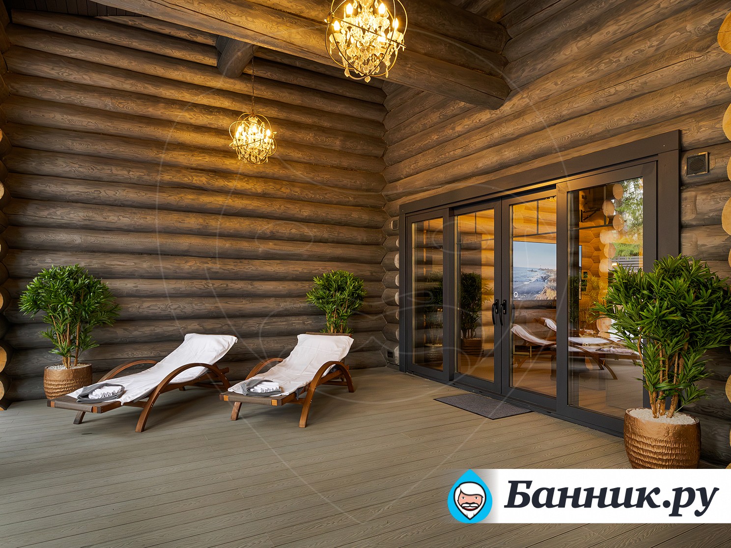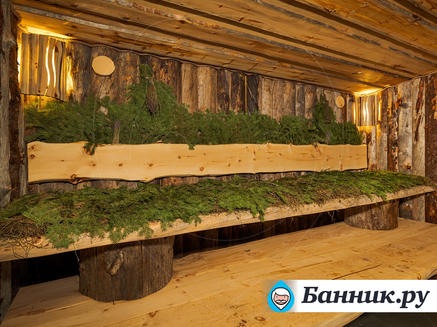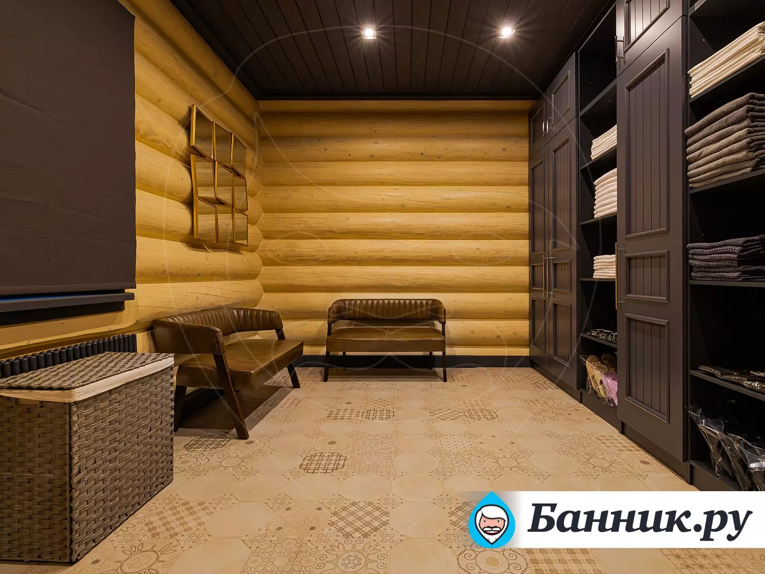 Баня выполнена из кело, создавая мягкий аромат и целительную атмосферу.