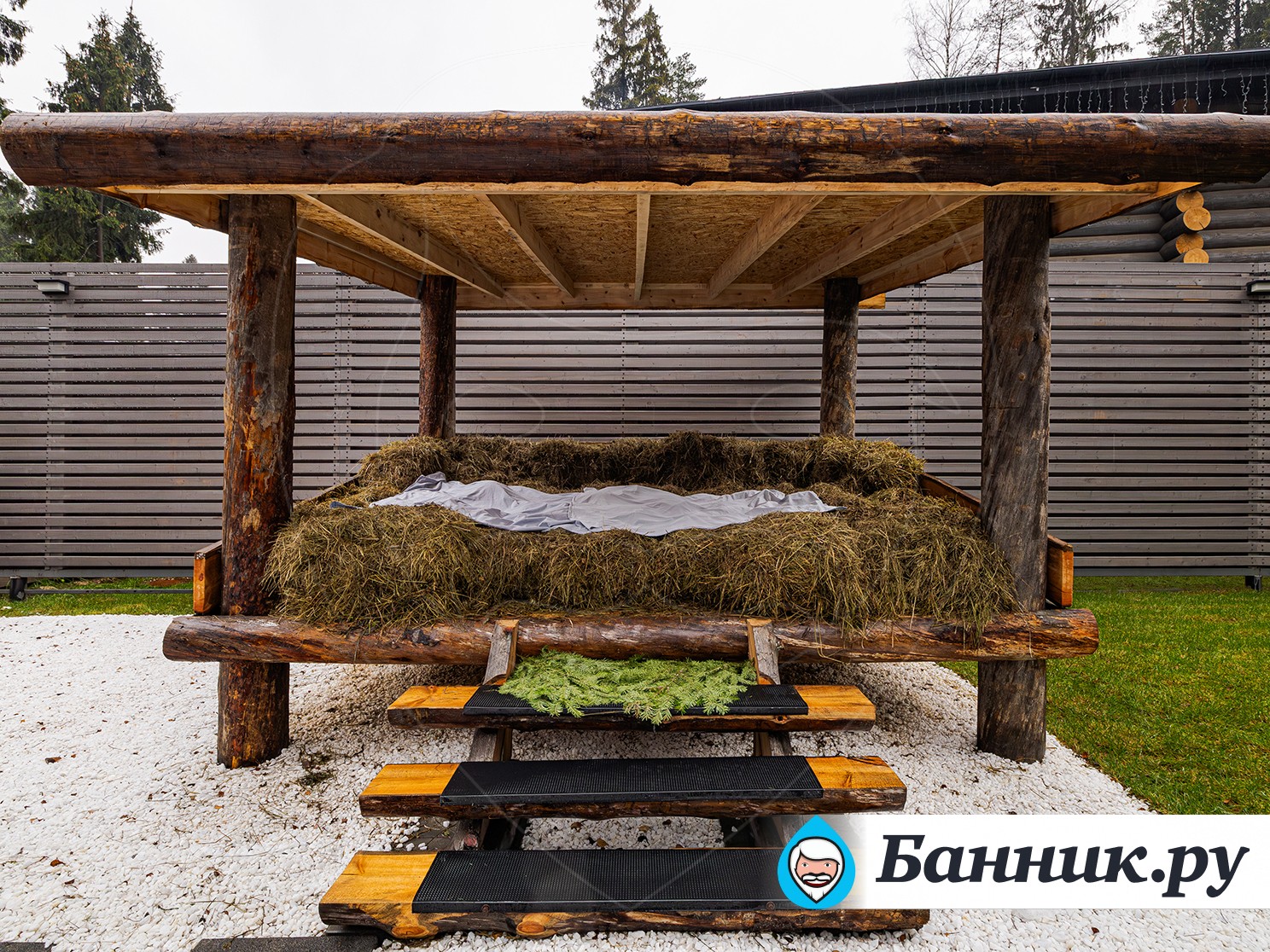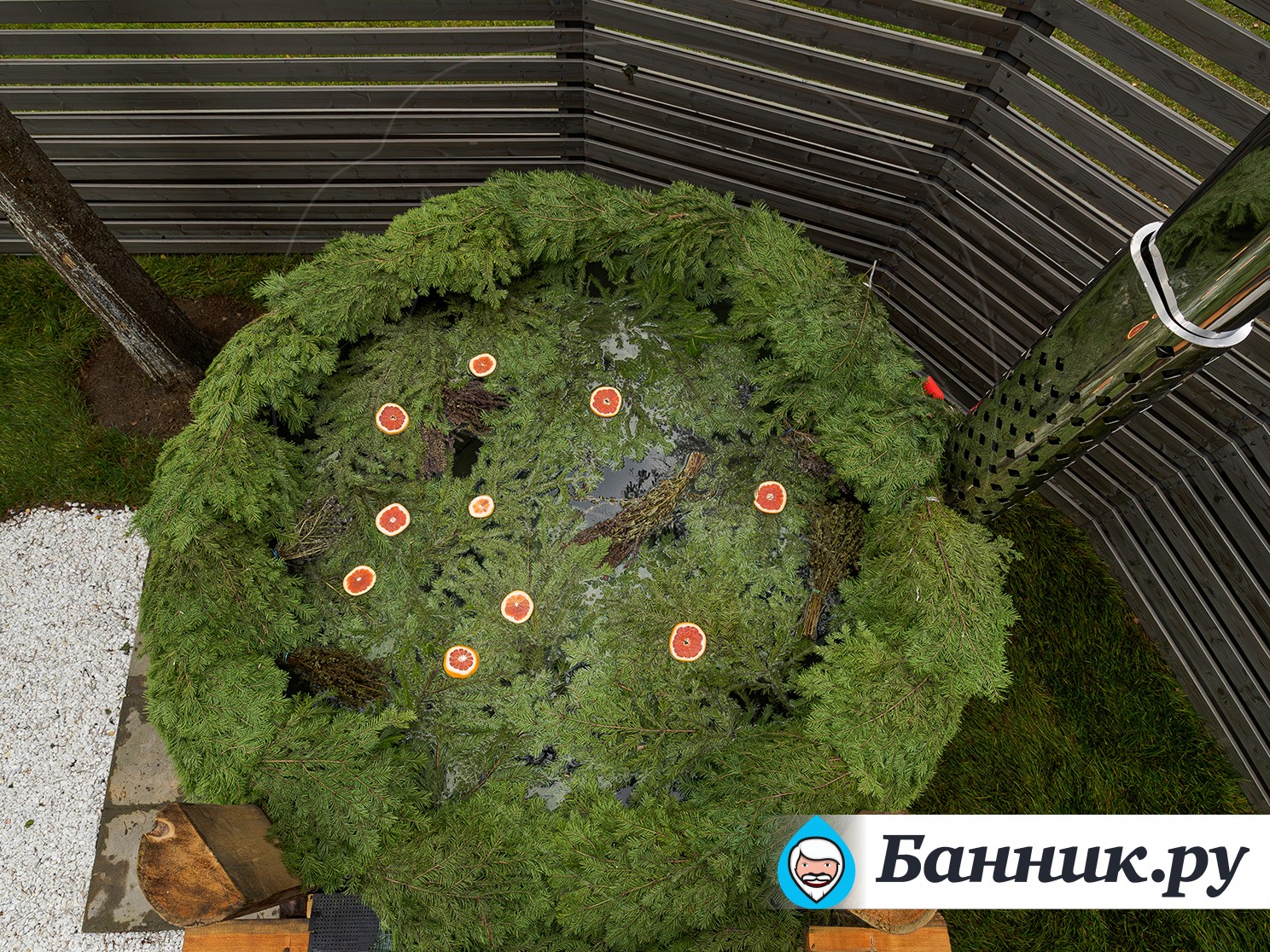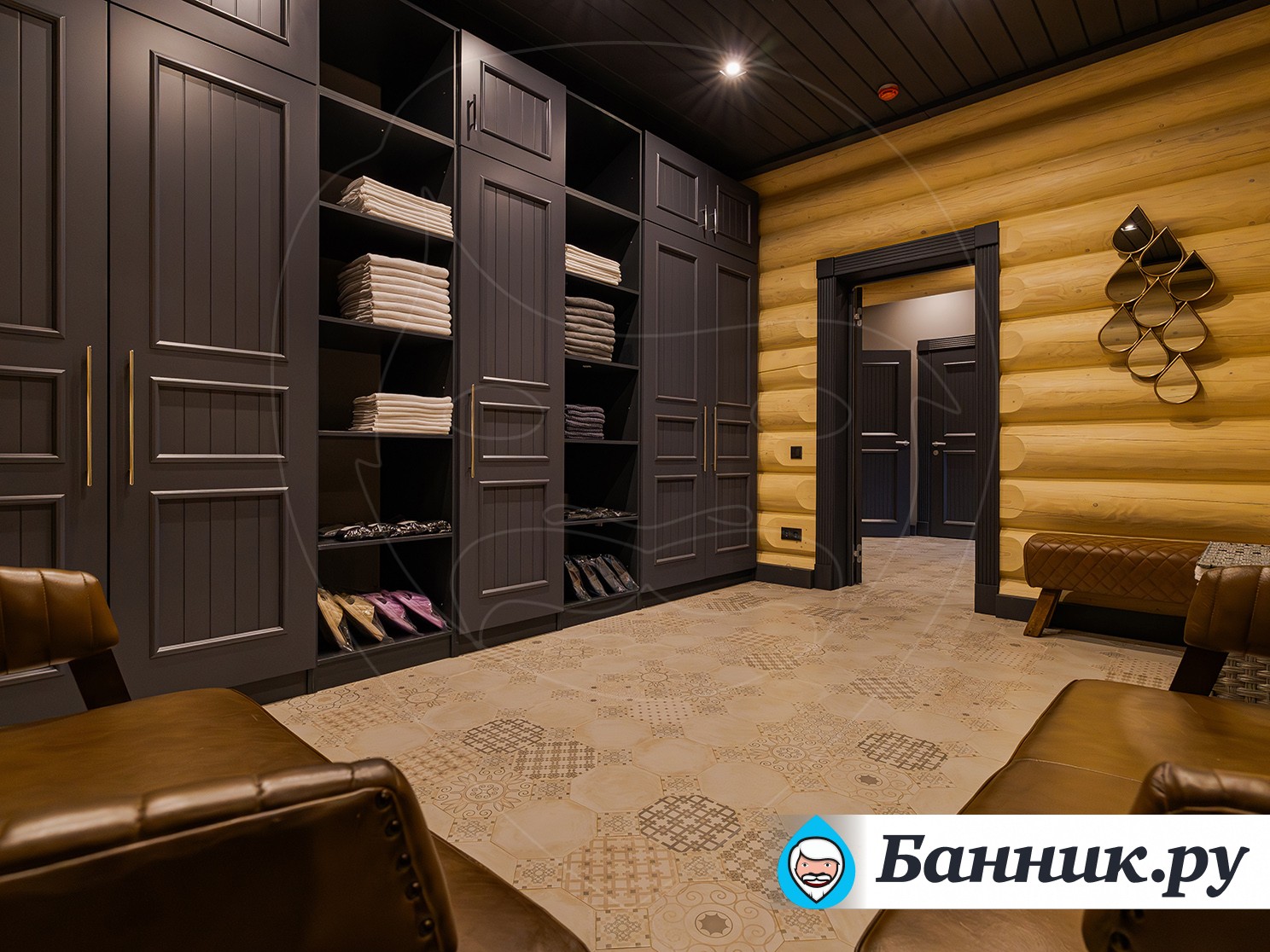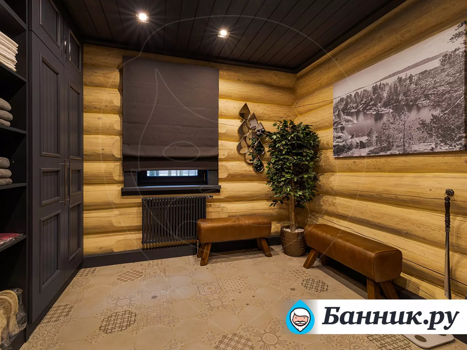 Баня выполнена из кело, создавая мягкий аромат и целительную атмосферу.