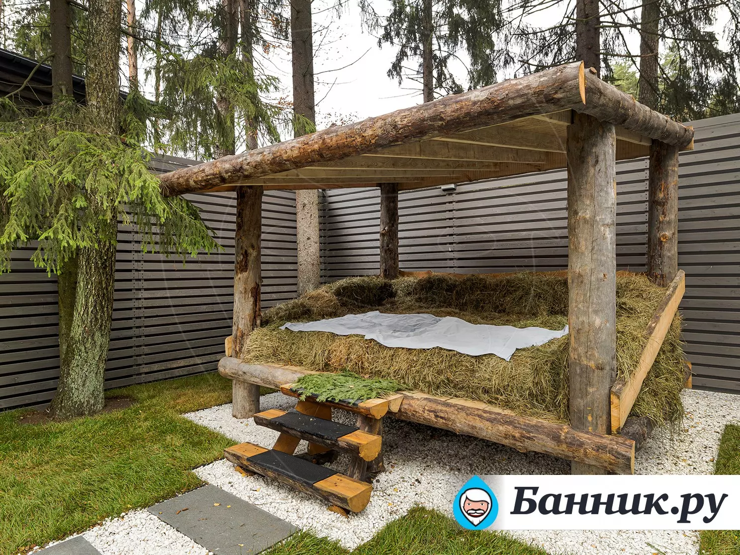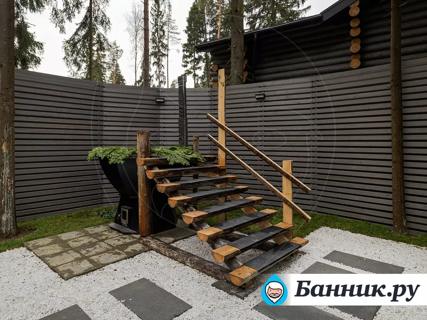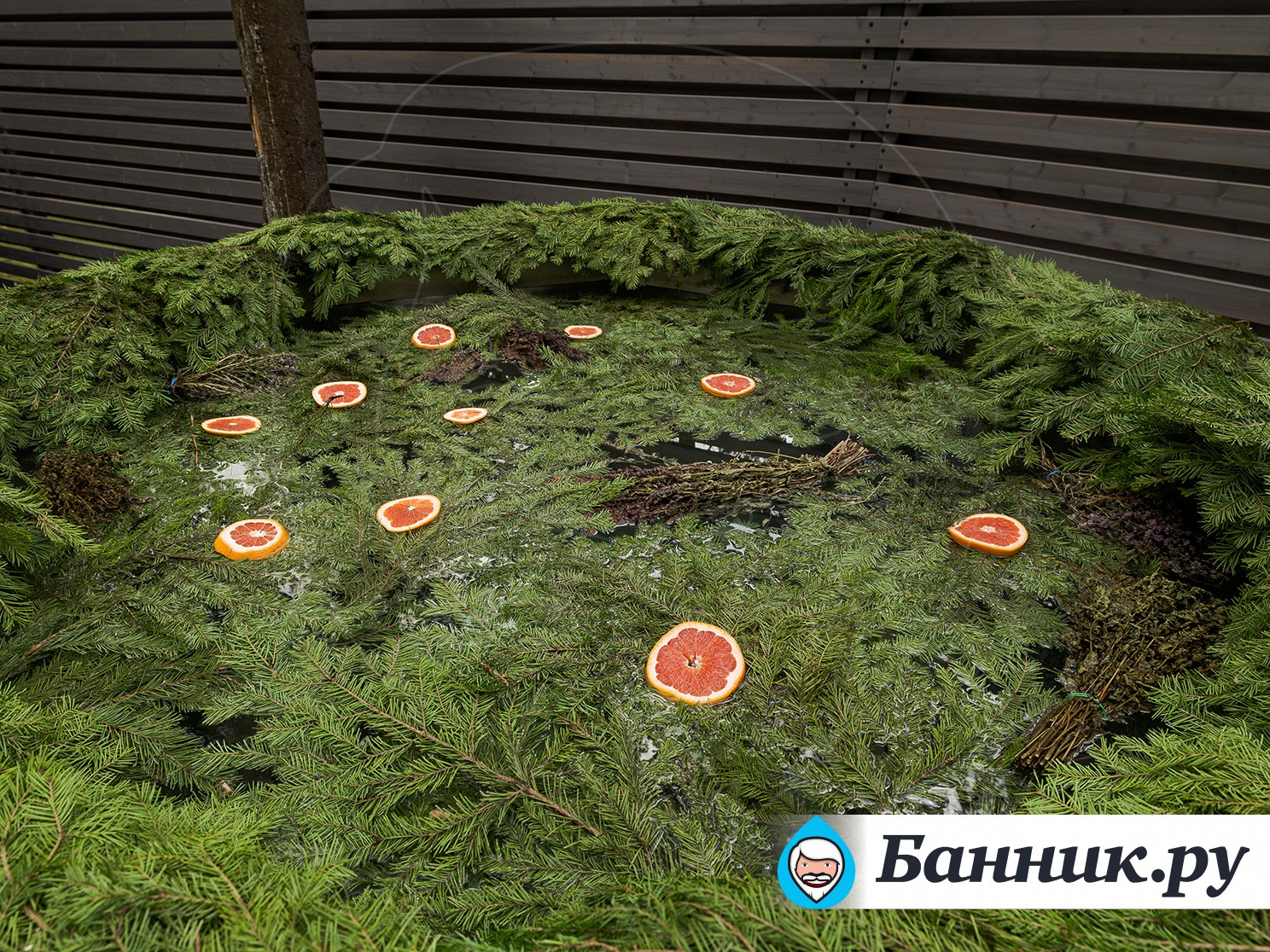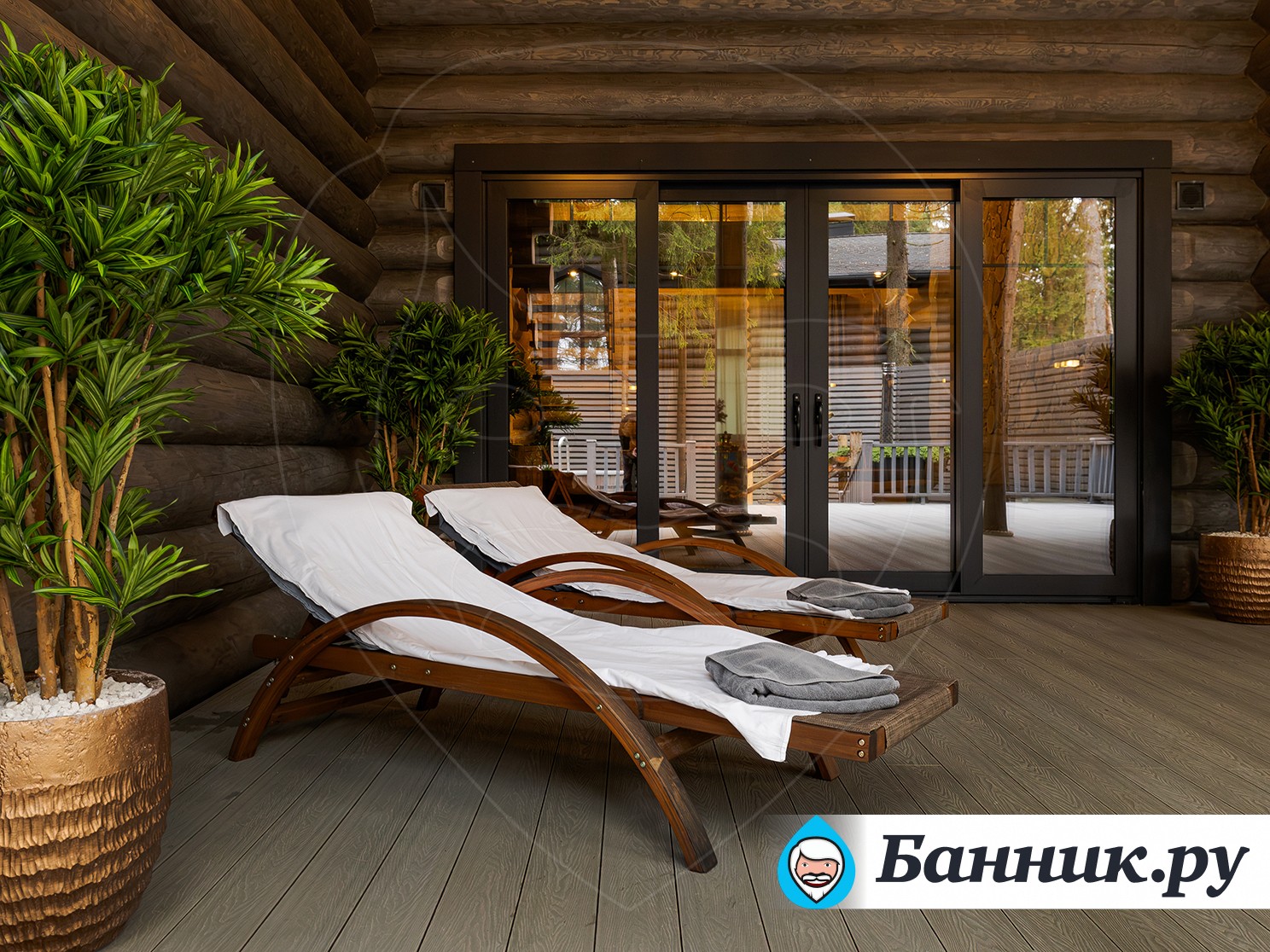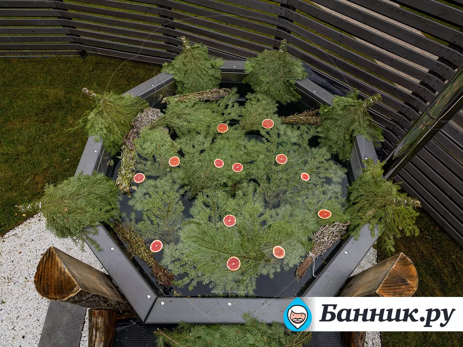 Баня выполнена из кело, создавая мягкий аромат и целительную атмосферу.