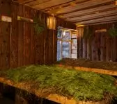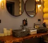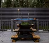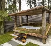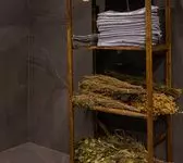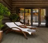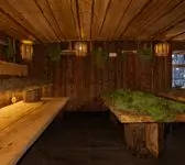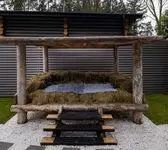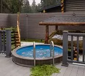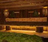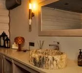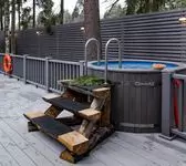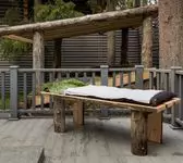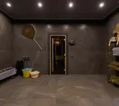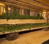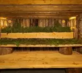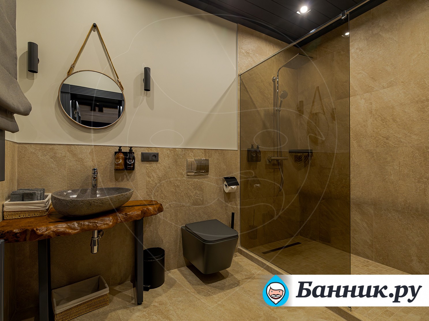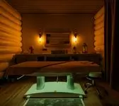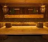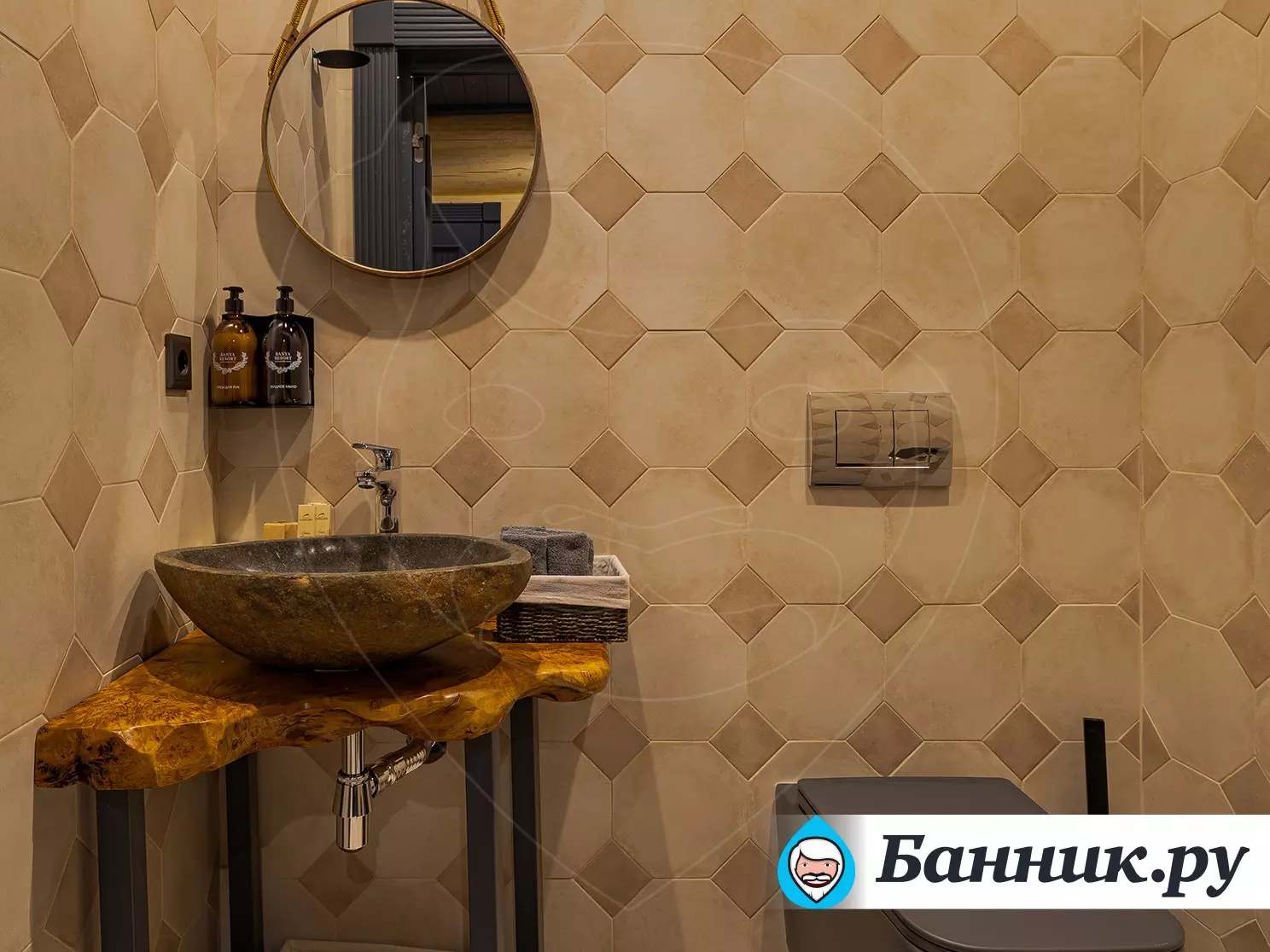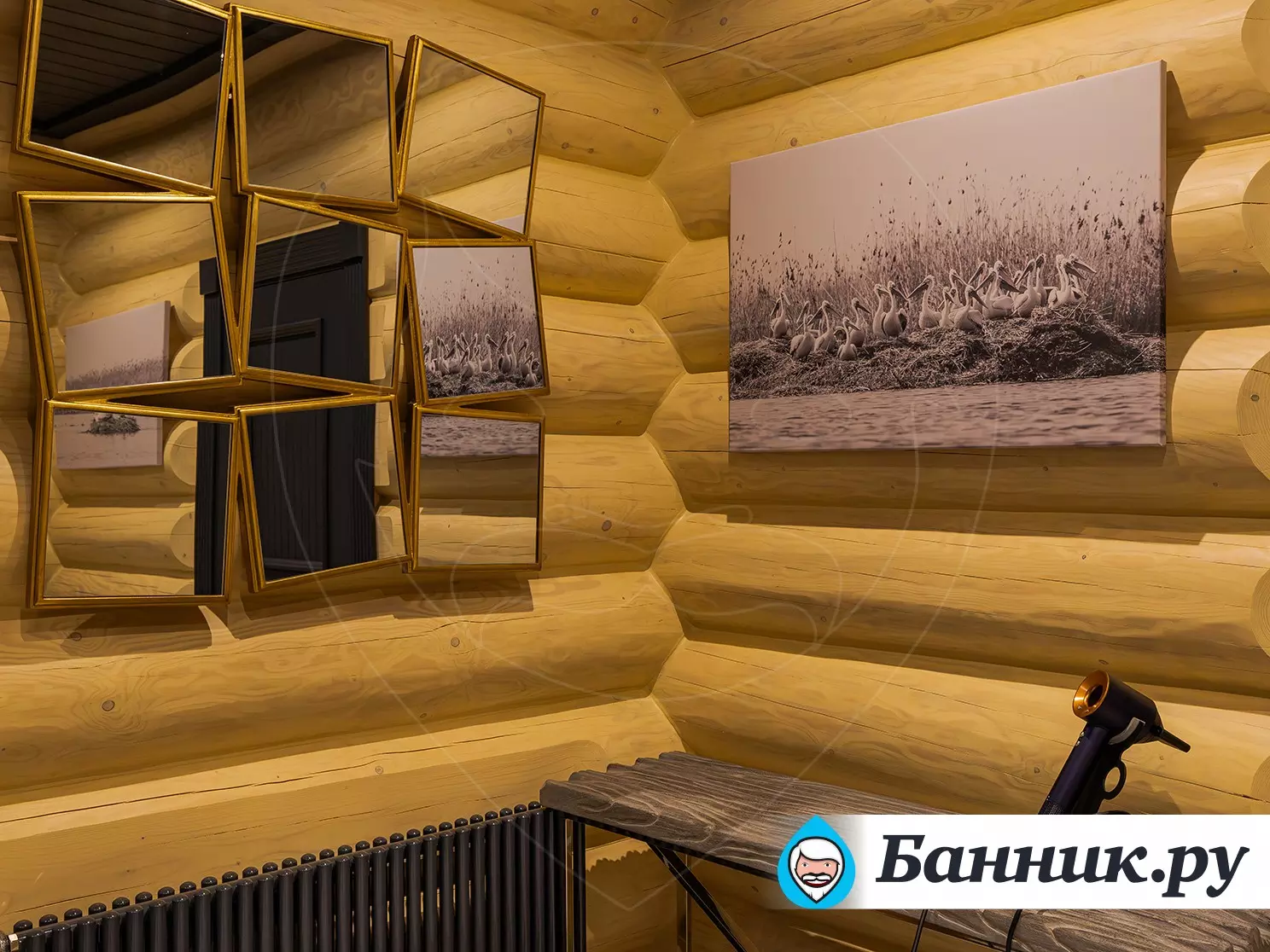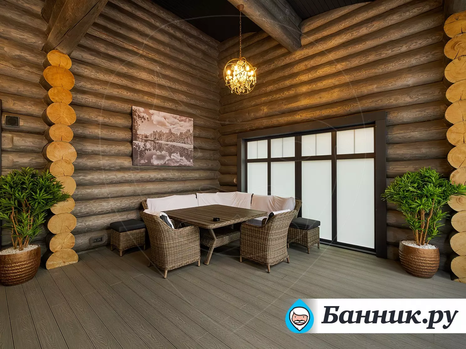 Баня выполнена из кело, создавая мягкий аромат и целительную атмосферу.