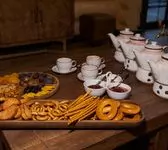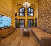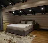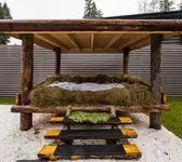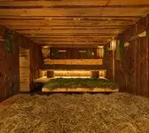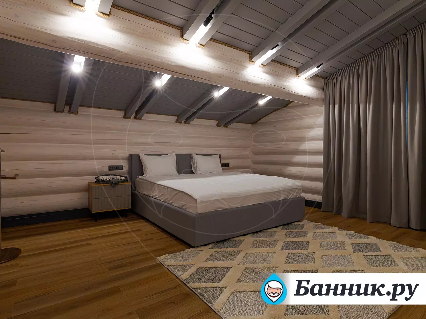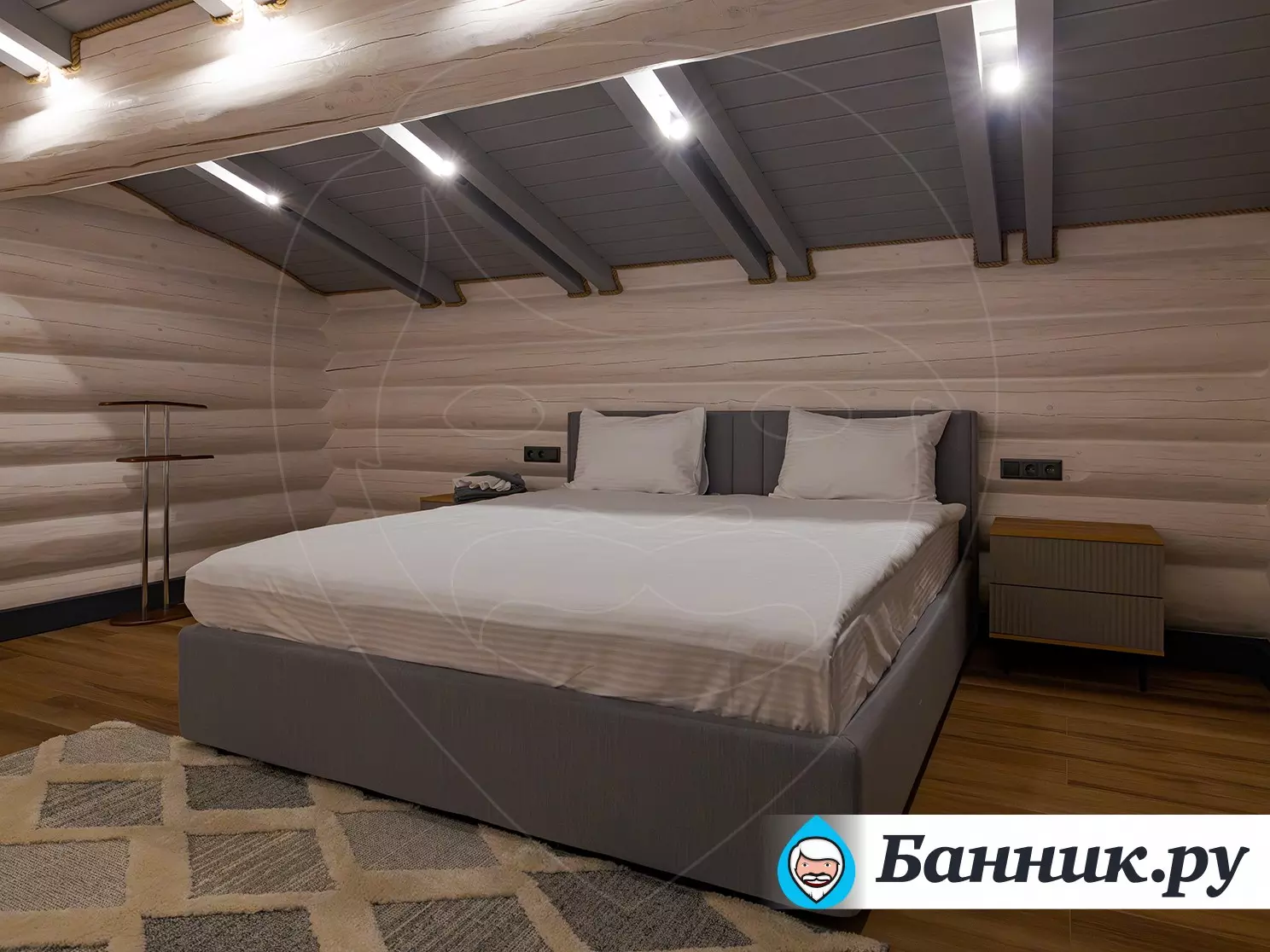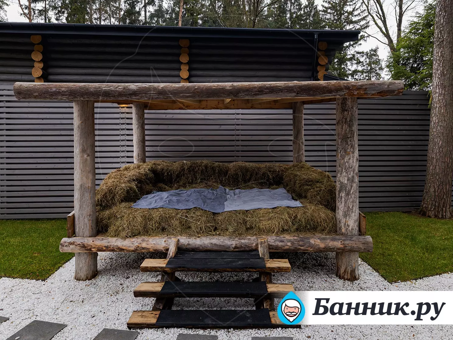 Во дворе дома обустроен сеновал — место для отдыха и восстановления сил в окружении ароматного сена, создающего особое ощущение уединения и умиротворения. Просторная гостиная с современным интерьером идеально подходит для совместного времяпрепровождения большой компании или семьи. В доме предусмотрены четыре мастер-спальни, каждая из которых оборудована собственной ванной комнатой, что обеспечивает максимальный комфорт и приватность для гостей.