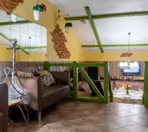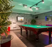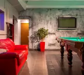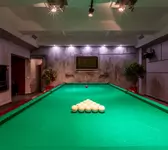 Если же вы просто желаете отдохнуть в тихой обстановке, то и для вас найдется занятие: откиньтесь на спинку кресла и включите спутниковое телевидение с множеством музыкальных и развлекательных каналов на любой вкус. Вы ярый болельщик и боитесь пропустить футбольный матч? Не беда, для вас есть большой экран и проектор. Также в наличии имеется караоке с множеством музыкальных хитов и несколько бильярдных столов, где вы сможете покатать шары. Здесь вы никогда не останетесь голодным: собственная кухня с различными национальными блюдами и множество напитков, включая пиво, — выбирайте, что хотите.