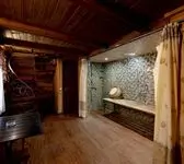 Отличное место для расслабления и отдыха! Мы посетили сауну Лукоморье вдвоём с моей партнёршей. Для пары это место подходит отлично! Для большой компании, конечно, лучше выбрать более просторные бани, такие как Боярская, Купеческая или Княжеская. Лукоморье предлагает сухую сауну, в отличие от других, где есть русские бани на дровах с паром и вениками. Обстановка внутри очень уютная, похожая на загородный дом. Мебель может быть немного потертой, но в целом чисто и уютно. На втором этаже есть комната отдыха с кроватью и массажным креслом.