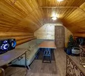 Прилично, заказали княжеский номер. На втором этаже много места, 4 комнаты с двуспальными кроватями. Баня хорошо нагревается, есть музыка, купель, душ, туалет. Провести время с друзьями весело.