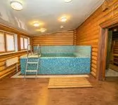 Коттедж с русской баней, хамамом и купелью оснащен всем необходимым для комфортного загородного отдыха семьей или компанией: 1-ой гостиной комнатой с обеденным столом на 8 человек, 3-мя спальными комнатами с двухместными кроватями, 2-мя туалетными комнатами, 2-мя душевыми кабинами при бане, хамамом, русской баней на дровах, зоной для барбекю с мангалом и садовой мебелью, 1-им ТВ.