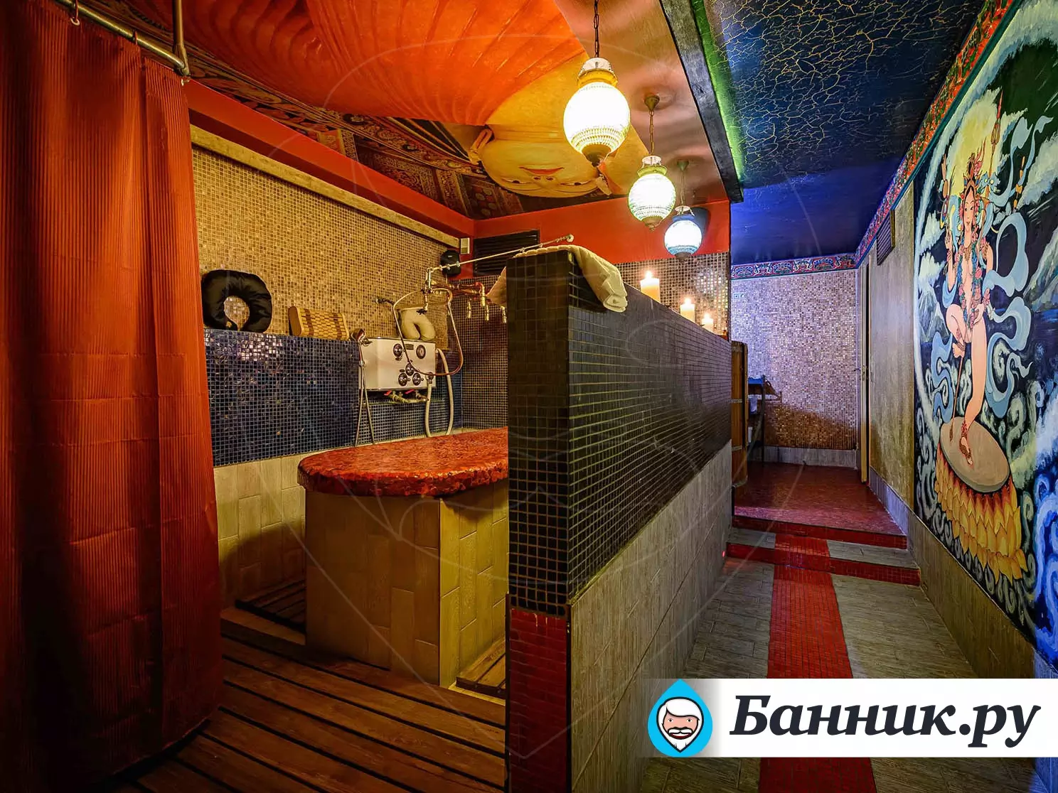 Тибет – загадочное высокогорное царство и мы постарались передать в нашей фито-бане все краски Тибета, где реальность смешивается с мифами и легендами. Вас ожидает пропарка в кедровой бочке травяным паром (50-60 градусов) при этом голова находится в комнатной температуре. Эта процедура сопровождается массажем головы «Анти стресс». После пропарки вам сделают легкий массаж стоп в молочной ванночке. Вашему вниманию предлагается огромный выбор массажей и СПА процедур, а также блюда нашего ресторана и напитки из бара.
