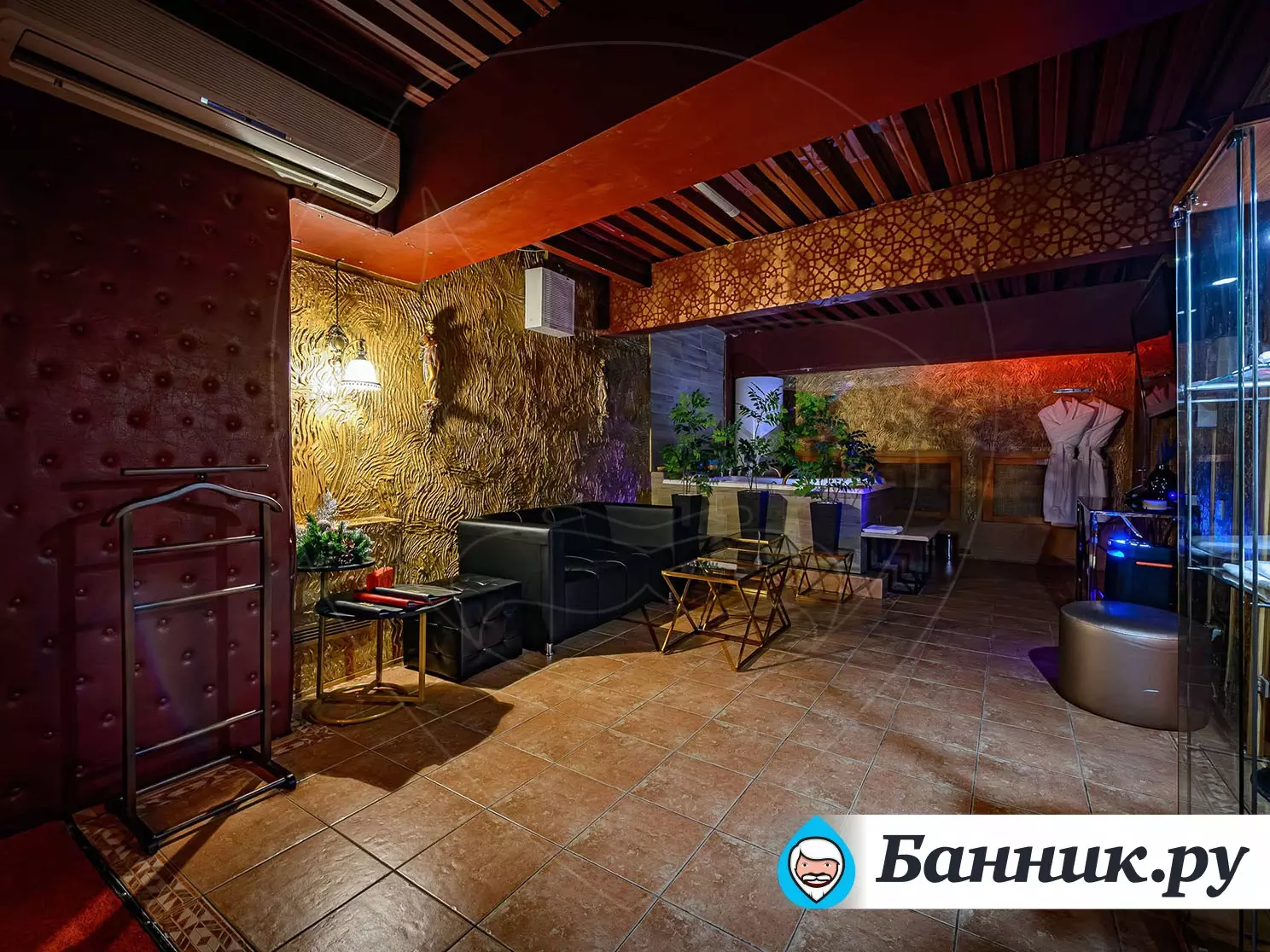 В СПА-клубе «SPA ROYAL KINGS» хамам размещен в двухуровневых апартаментах высшего класса. Кроме самой турецкой бани, в апартаментах находится: