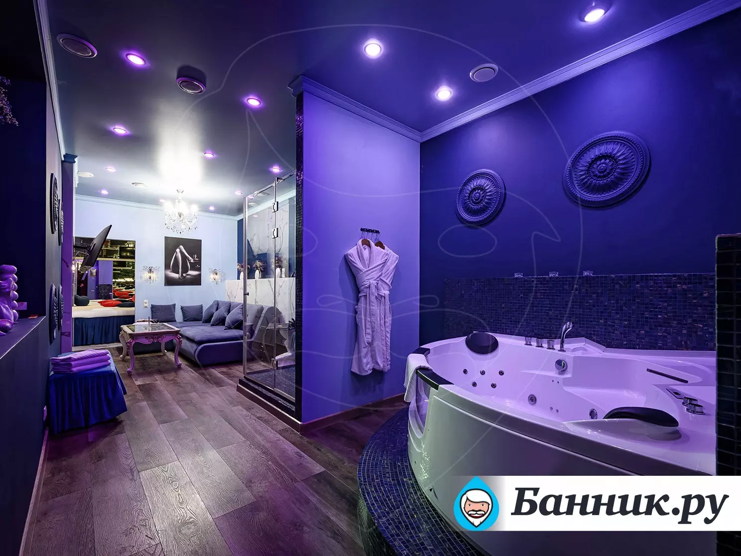 Если не нравится париться в бане, но хотелось бы отвлечься от городского шума и суеты – «Океан желаний» ждет Вас. К услугам гостей джакузи и панорамный душ, где девушка-массажистка сделает омовение и предложит различные виды массажей и СПА процедур. Для отдыха и релаксации есть зеркальная комната, где Вас будут ожидать напитки из бара и блюда из ресторана.