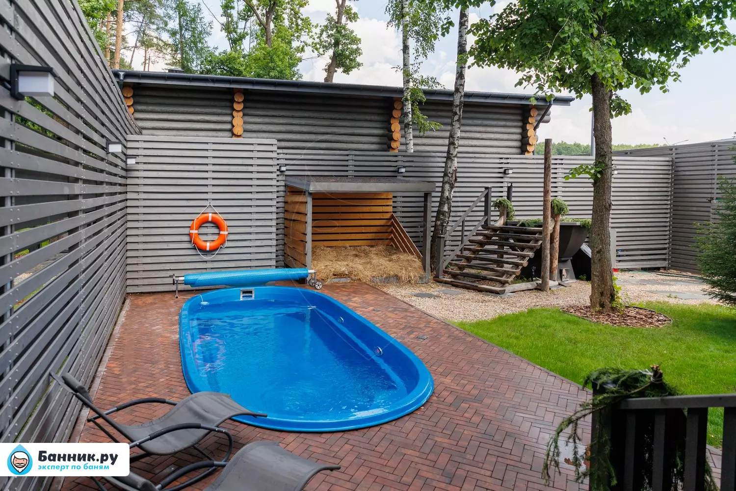 Бани тут реально просторные, даже если берёшь самую компактную — всё равно ощущается как большая. Удобно, что в каждом доме всё своё — парная, купель, а кое-где бассейн уходит прямо наружу, можно выплывать на улицу.