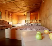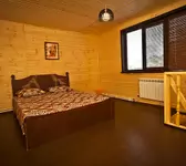 Для вашего максимального комфорта здесь есть липовая парная, душ и туалет, а также уличный бассейн, который подогревается в зимний период, поддерживая воду в диапазоне от +10° до +20°. На втором этаже располагается уютная спальня с просторной деревянной кроватью для восстановления сил после отдыха.