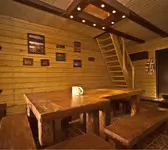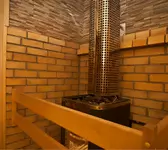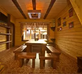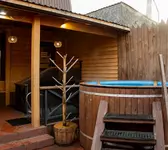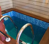 Баня № 1 дополнительно укомплектована Горячей Купелью с температурой воды 38°-40°, что делает ваш отдых ещё более расслабляющим и приятным.
