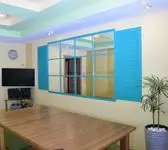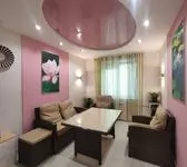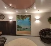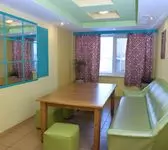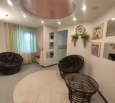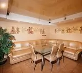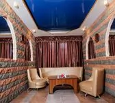 Красивая гостиная с современным дизайном оборудована кожаным диваном, столом из натурального дерева «под старину», телевизором и аудиосистемой. Для гостей круглосуточно работает бар, где можно заказать широкий спектр блюд, различные закуски и напитки. Обслуживание в номерах круглосуточно.