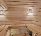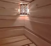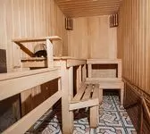 Любители хаммама оценят турецкую парную с высокой влажностью и не высокой температурой. Турецкий хаммам вместительностью до 4 человек выполнен в восточном стиле с куполообразным потолком. В жаркой парной из сибирского кедра можно воспользоваться веником или услугами парильщика, который подберет индивидуальную программу парения.