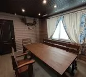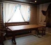 Номер оформлен в традиционном русском стиле, декорирован шкурой медведя и рогами лося. Мебель сделана из натурального массива дерева. Природные мотивы в дизайне и охотничьи трофеи создают необыкновенную атмосферу для полноценного отдыха.