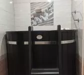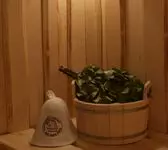 В номере большая липовая парная, купель с холодной водой и моечное отделение с двухместной ванной. После парения можно окунуться в купель с холодной водой или расслабиться в теплой ванной. Ощутить максимальное удовольствие от бани поможет профессиональный парильщик.