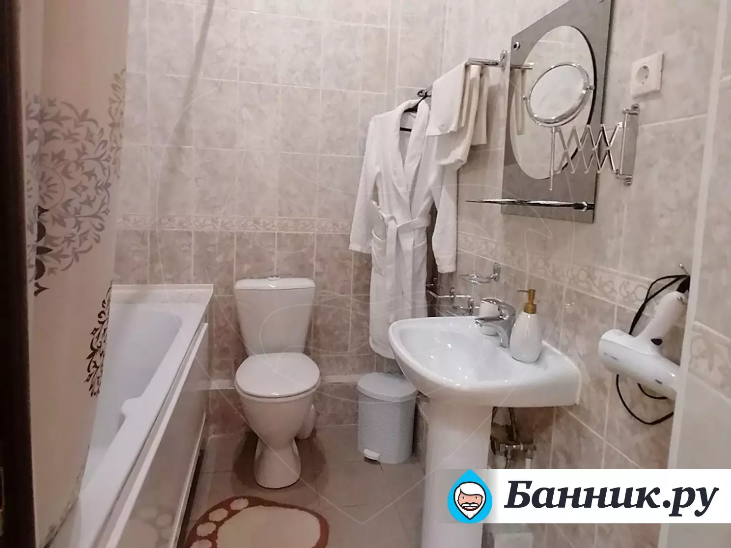 В ванной комнате: душ, туалет, фен, бесплатные гигиенические принадлежности: мыло, шампунь, гель для душа, комплект полотенец, махровый халат, одноразовые тапочки. Все номера оборудованы кондиционерами.
