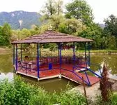 На территории комплекса расположены просторный банкетный зал, летняя беседка над водой для торжеств, теннисный корт, озеро для рыбалки с карпом, сазаном и белым амуром, а также летняя пацха. При необходимости гости могут арендовать уютные номера со всеми удобствами на нужное время.