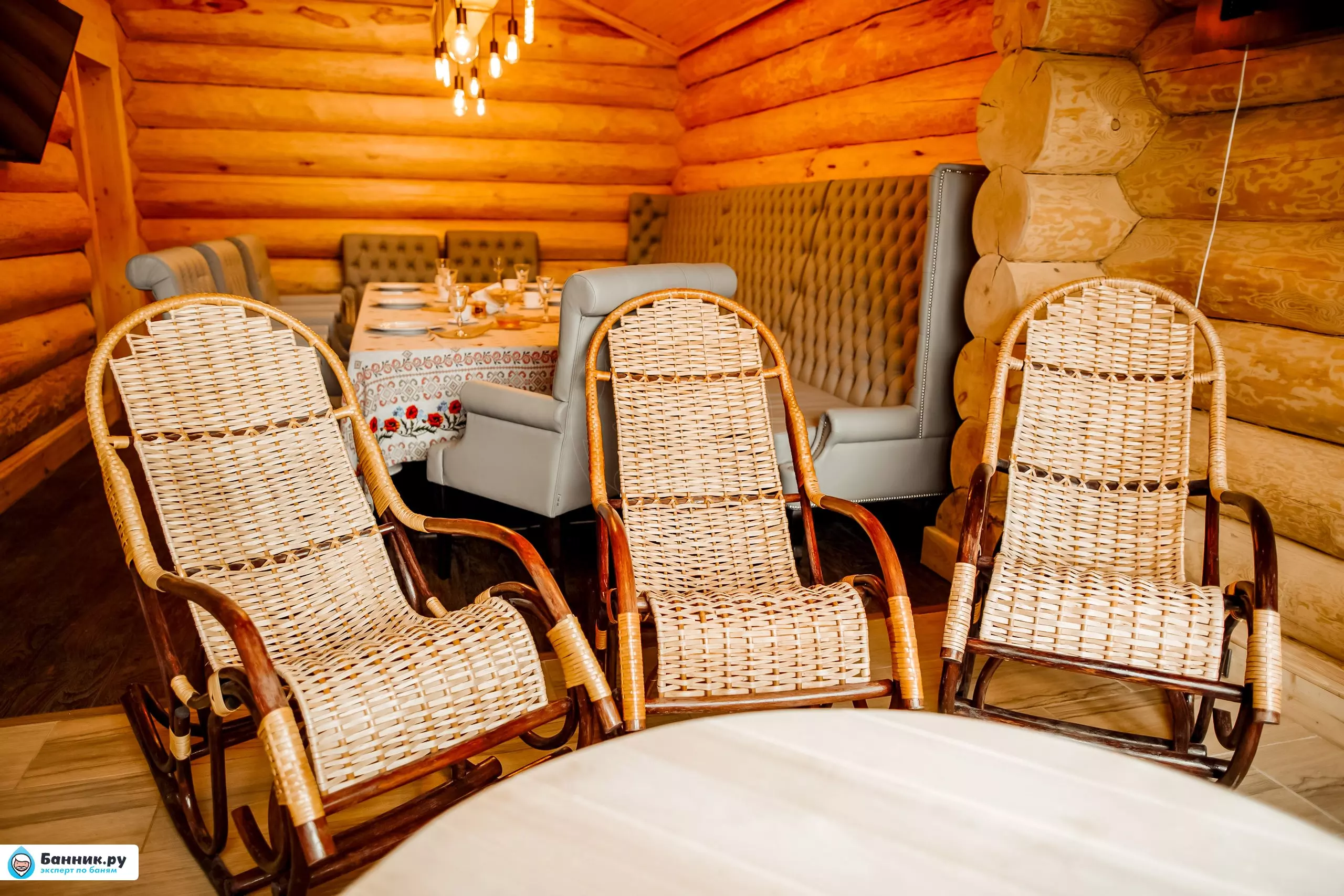 Гостям предлагается провести время в ароматной бане из сруба сосня, лиственницы и кедра с вениками, пройти комплекс современных и традиционных оздоровительных процедур, после чего посидеть в гостиной с мебелью из натурального дерева, за накрытым столом с самоваром.
