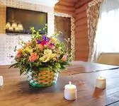 отмечали совершеннолетие дочери! был 5ый люкс, очень симпатичный, с хамамом. парилка в нашем люксе и общая баня очень понравились всем нашим мужчинам. Уличный бассейн с подогревом и подсветкой. У домика зона барбекю, мы готовили шашлыки. Сосны вокруг украшены фонариками, играет музыка. Все как будто для нашего торжества! спасибо большое! вернемся еще!