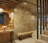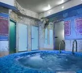 Отмечали маленькое торжество в компании. Администратор комплекса предложила ВИП люкс номер 5. Там был интересный интерьер, свой хаммам, комната отдыха, на улице бассейн с подогревом, купель, общее банное отделение с русской парной. Просторное общее пространство для отдыха, шезлонги у бассейна. Если есть солнце можно и позагорать и искупаться) Поиграли в бильярд. Нам предлагали услуги банщика и массажиста но мы не воспользовались