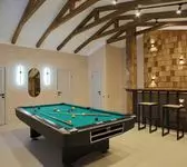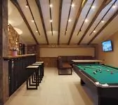 Баня в пятом номере порадовала: есть бильярд, несколько комнат, большой стол и бассейн с массажем — всё, что нужно.
