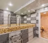 Для вас финская парная (электро), в которой гости могут попариться, и зона водных процедур: удобный душ, обливная система и небольшой бассейн 3 на 2 метра, в котором вы сможете охладиться после жаркого пара.