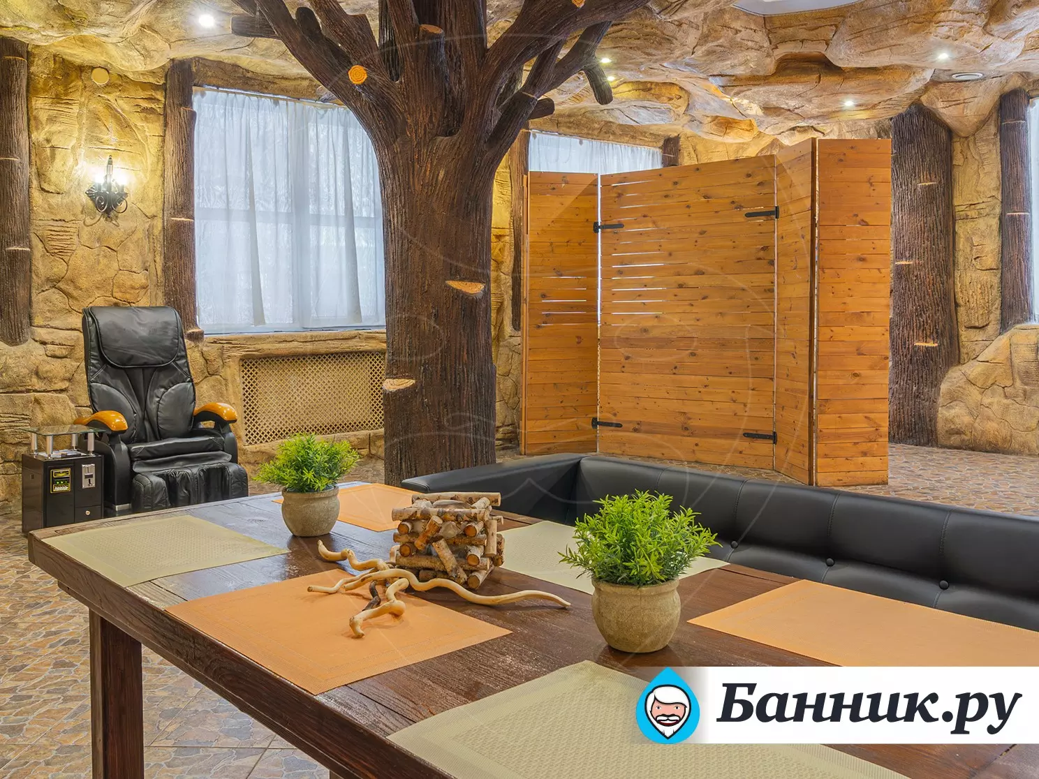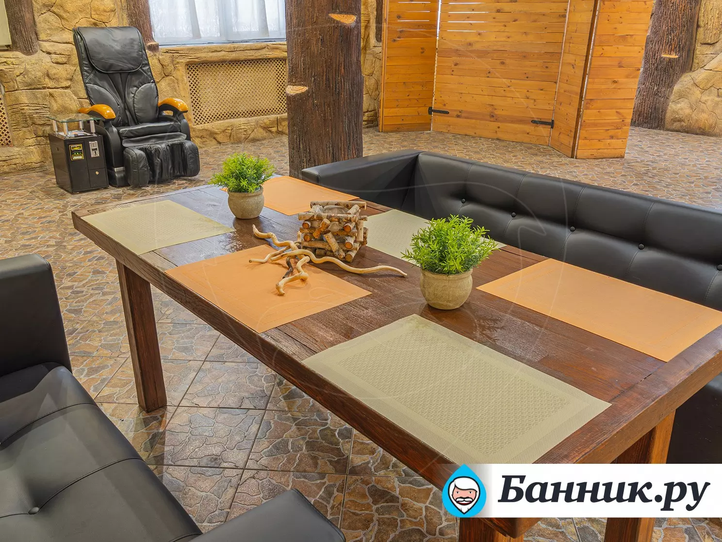 В состав комплекса входит классическая сауна, обеспечивающая аутентичные ощущения от парения, а также массажное кресло для дополнительного расслабления мышц после тепловых процедур. Для развлечения и комфортного времяпрепровождения в помещениях установлен современный телевизор. Гостям доступны услуги чайной церемонии с подборкой различных сортов чая, а также кальян с классическими и авторскими вкусами, что создаёт атмосферу размеренного отдыха в кругу близких людей.