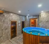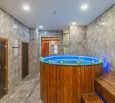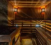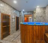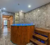 Гостей ждут два вида парных: турецкая и финская. От посещения каждой из них будет свой положительный эффект. Так финская сауна с сухим горячим воздухом позволит как следует прогреть организм, очистить верхние дыхательные пути, ускорить кровоток и обменные процессы. Турецкий хаммам с его высокой влажностью и не очень высокими температурами благотворно скажется на коже, улучшит качество сна, поможет при простудных заболеваниях. Завершить банные процедуры гостям предлагается в прохладных водах небольшого бассейна и душевой, где можно смыть с себя все омертвевшие клетки и выделившиеся токсины.