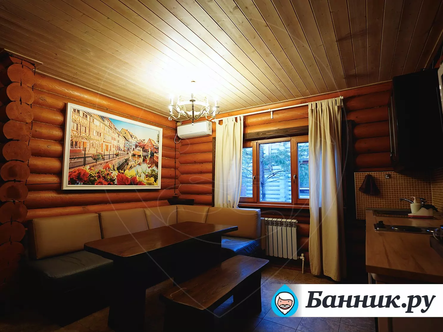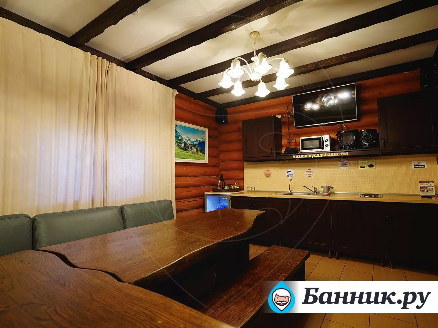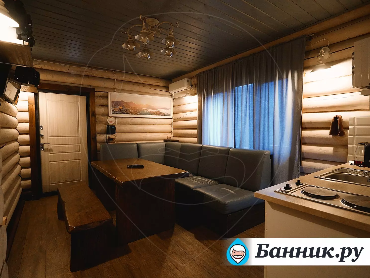 Внутри просторная парная, джакузи с гидромассажем, купель, две душевые.